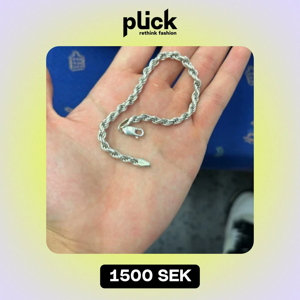 Armbandet är äkta silver 4mm bredd och 21 cm lång, halsbandet är 3mm bredd och 50cm lång äkta silver stämpel finns på både. Säljs som ett set.