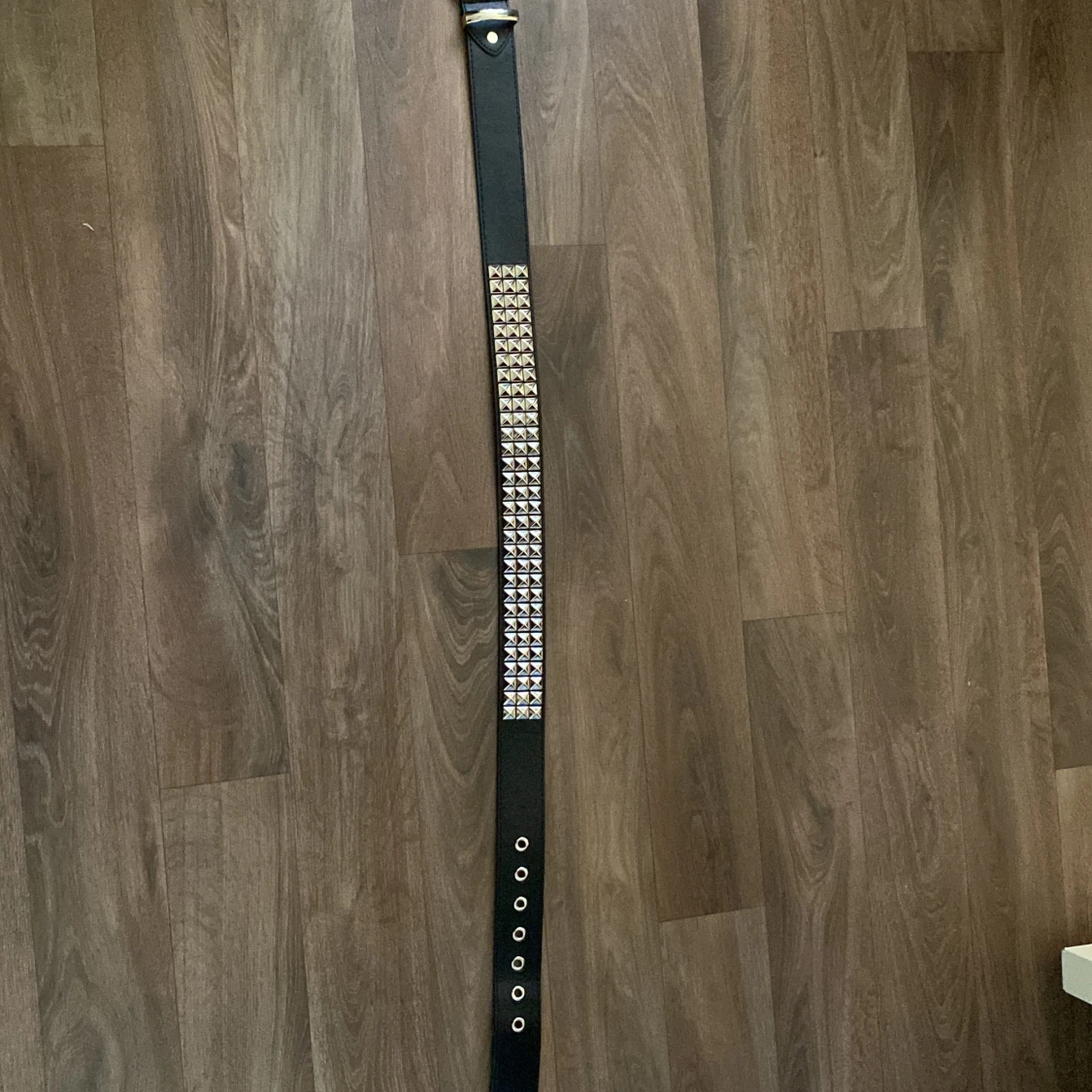Ett ganska nytt skärp jag köpt i vintras som använts några gånger,Säljs då jag inte vill ha det mer.Alla nitar är kvar på skärpet.Jag tror det är 75 eller 80 cm och det sitter bra på mig som är storlek s/m💕