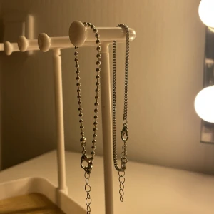 Två stilrena silverfärgade armband . Det ena har en kedja med små kulor medan det andra har en slät kedja. Perfekta för att bära tillsammans eller var för sig för en elegant look.