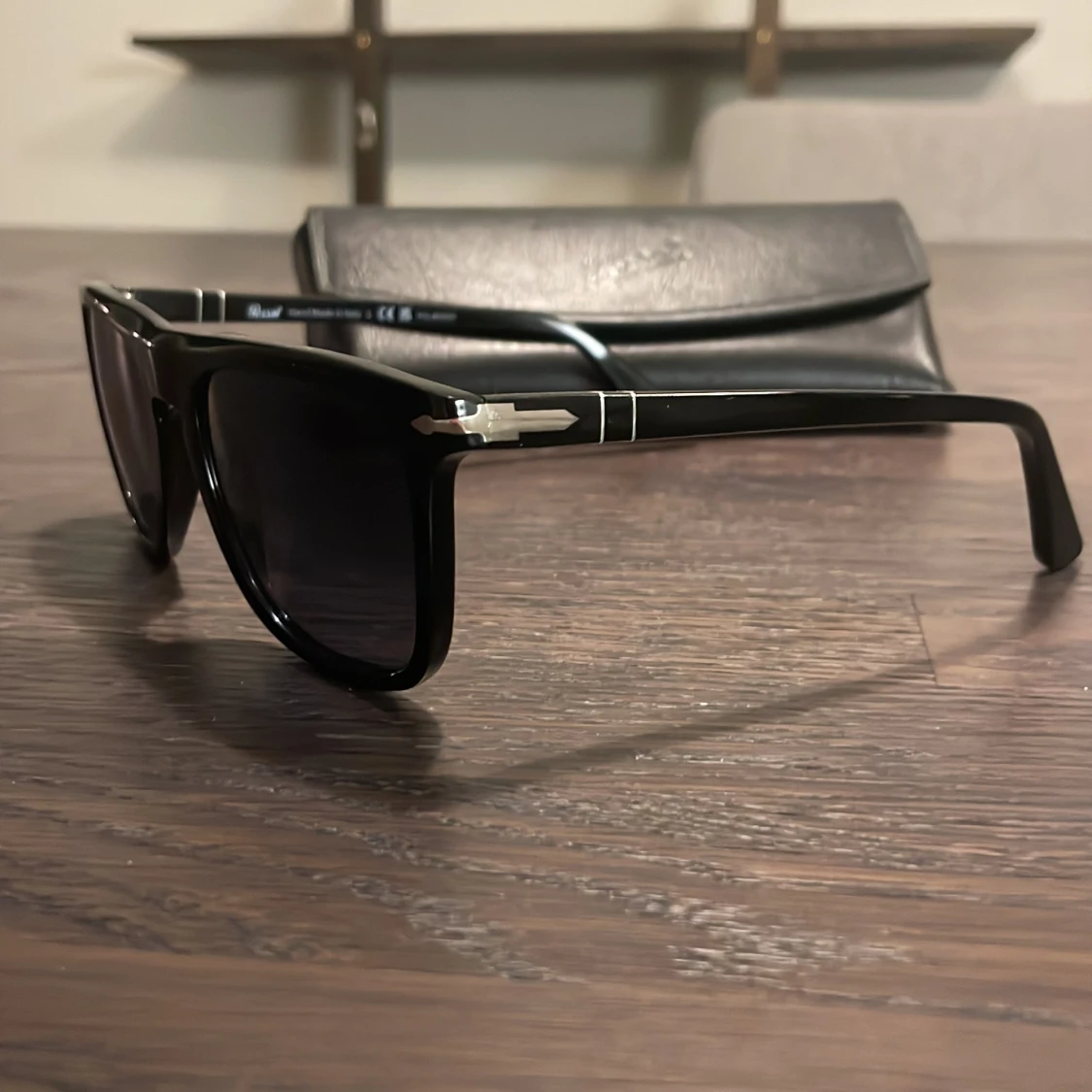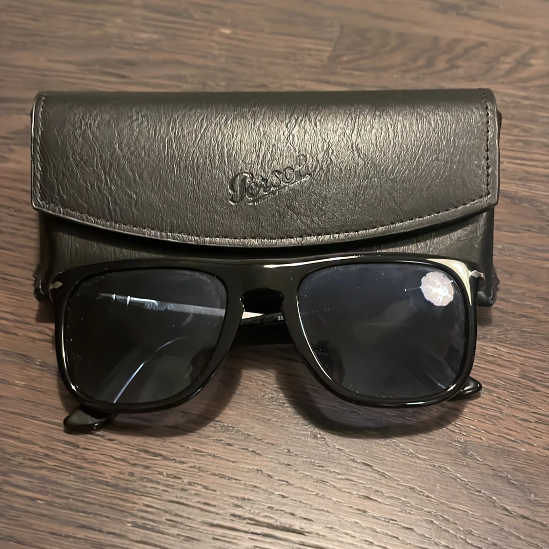 Snygga svarta solglasögon från Persol med polariserade linser. Handgjorda i Italien och kommer med ett stilrent svart fodral. Perfekta för soliga dagar och ger en klassisk look.