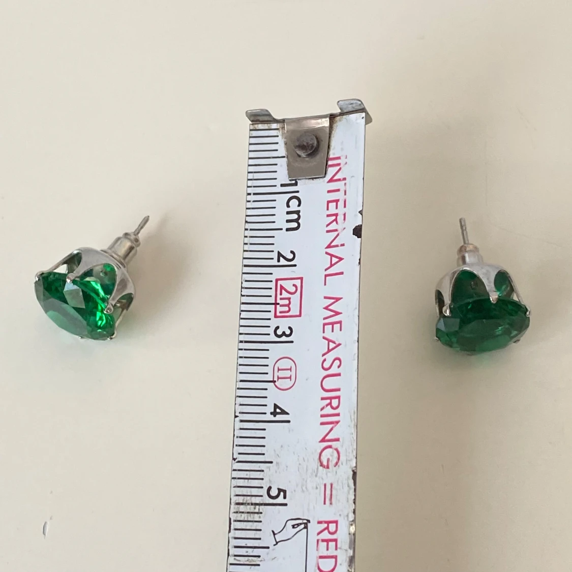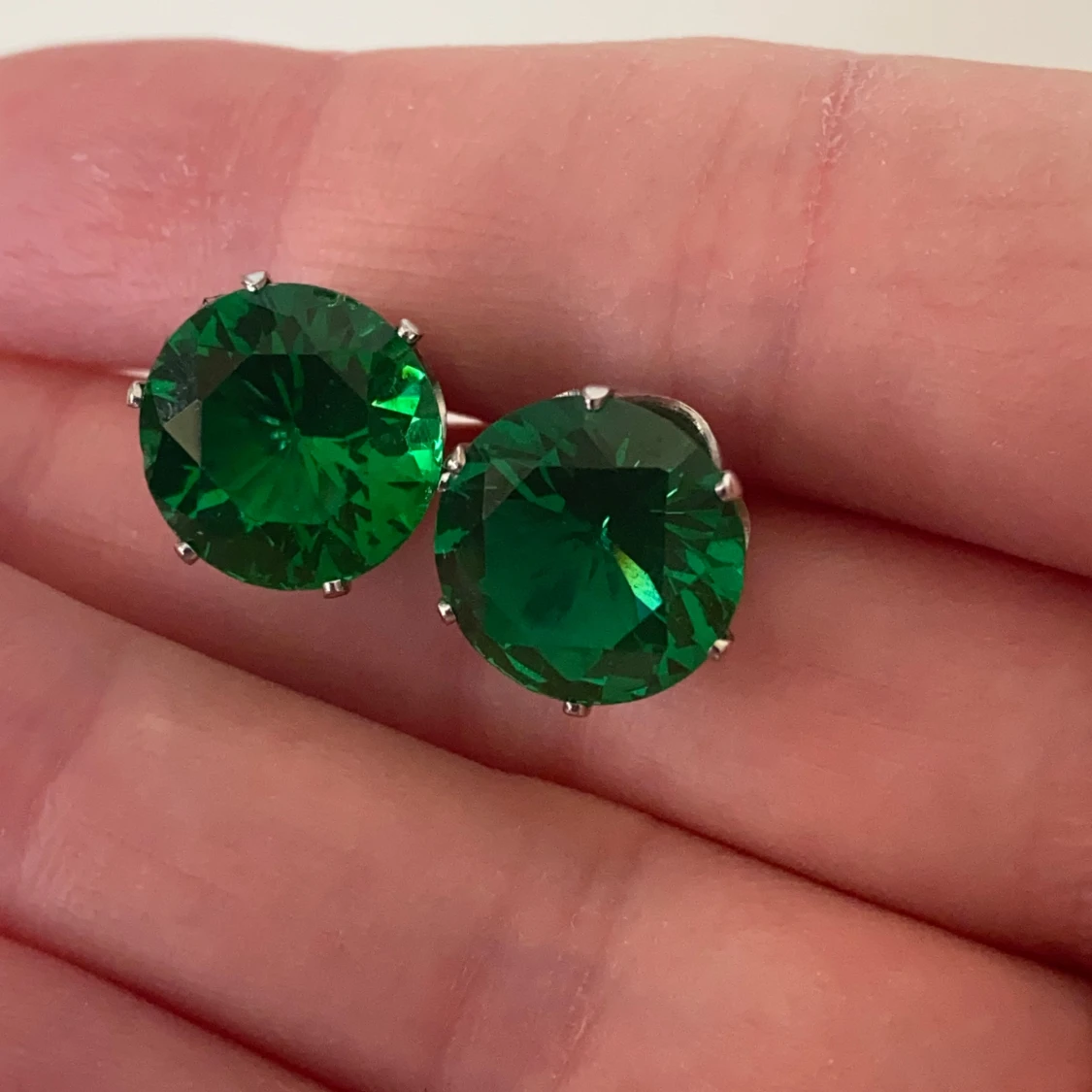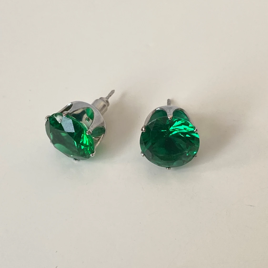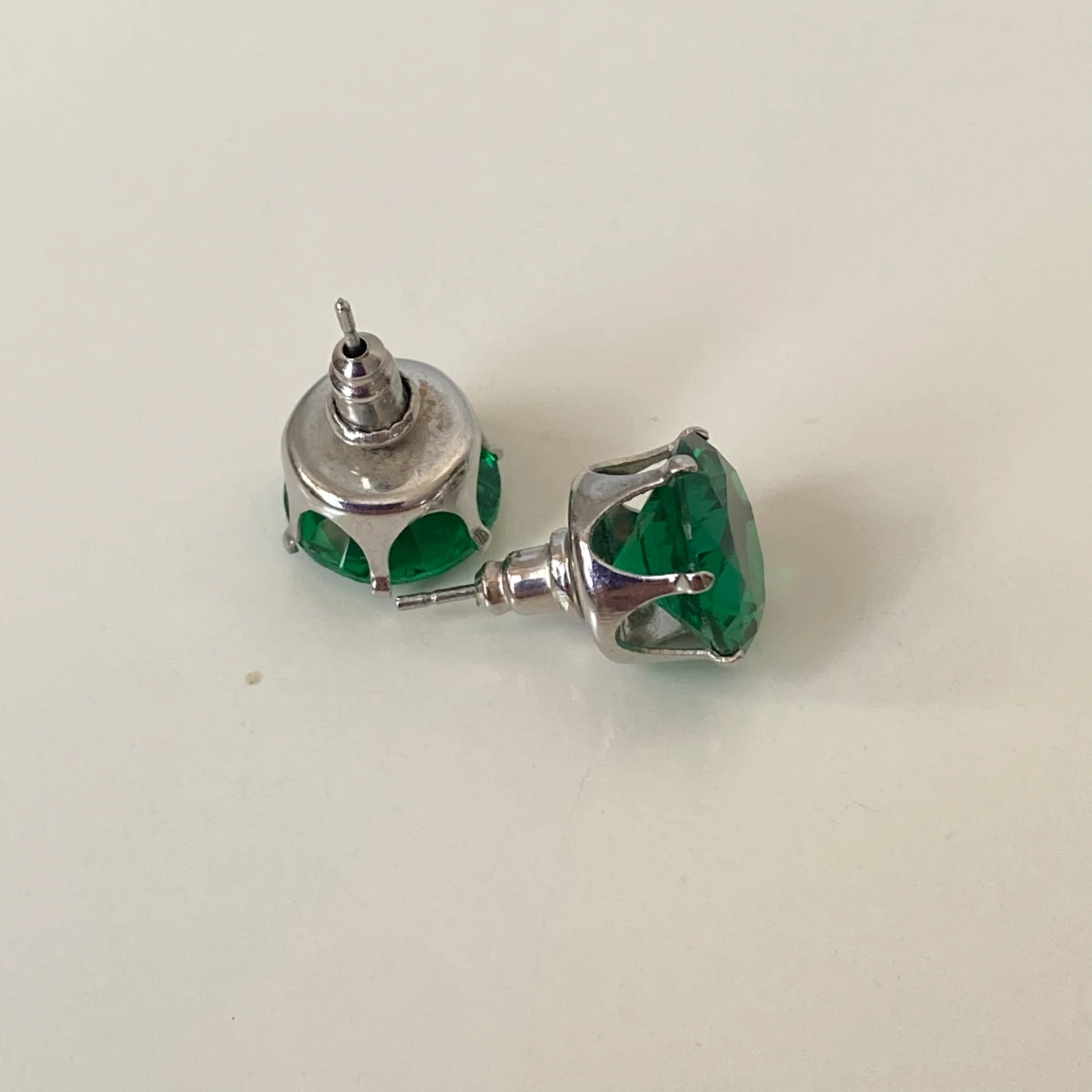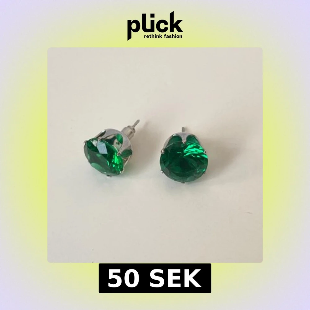 Snygga gröna örhängen med stora, runda stenar i en klar grön nyans. Stenarna är infattade i ett silverfärgat fäste som ger en elegant look. Perfekta för att lägga till en färgklick till din outfit.