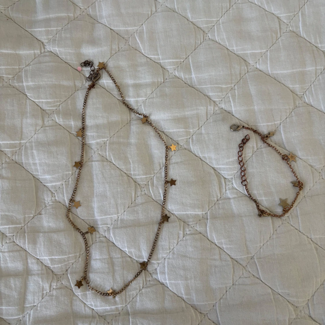 Tryck ej på köp om du inte ska köpa allt Första bilden är på halsband Andra är på fotlänk Tredje är på halsband och armband Alla för 80 kr En för 10 kr Priset kan diskuteras