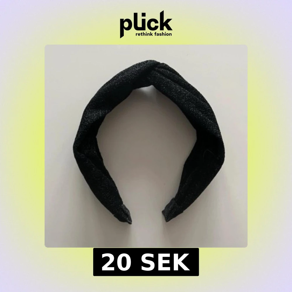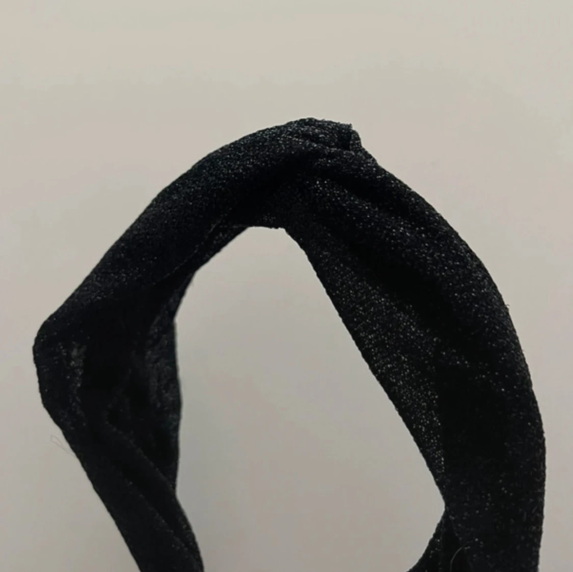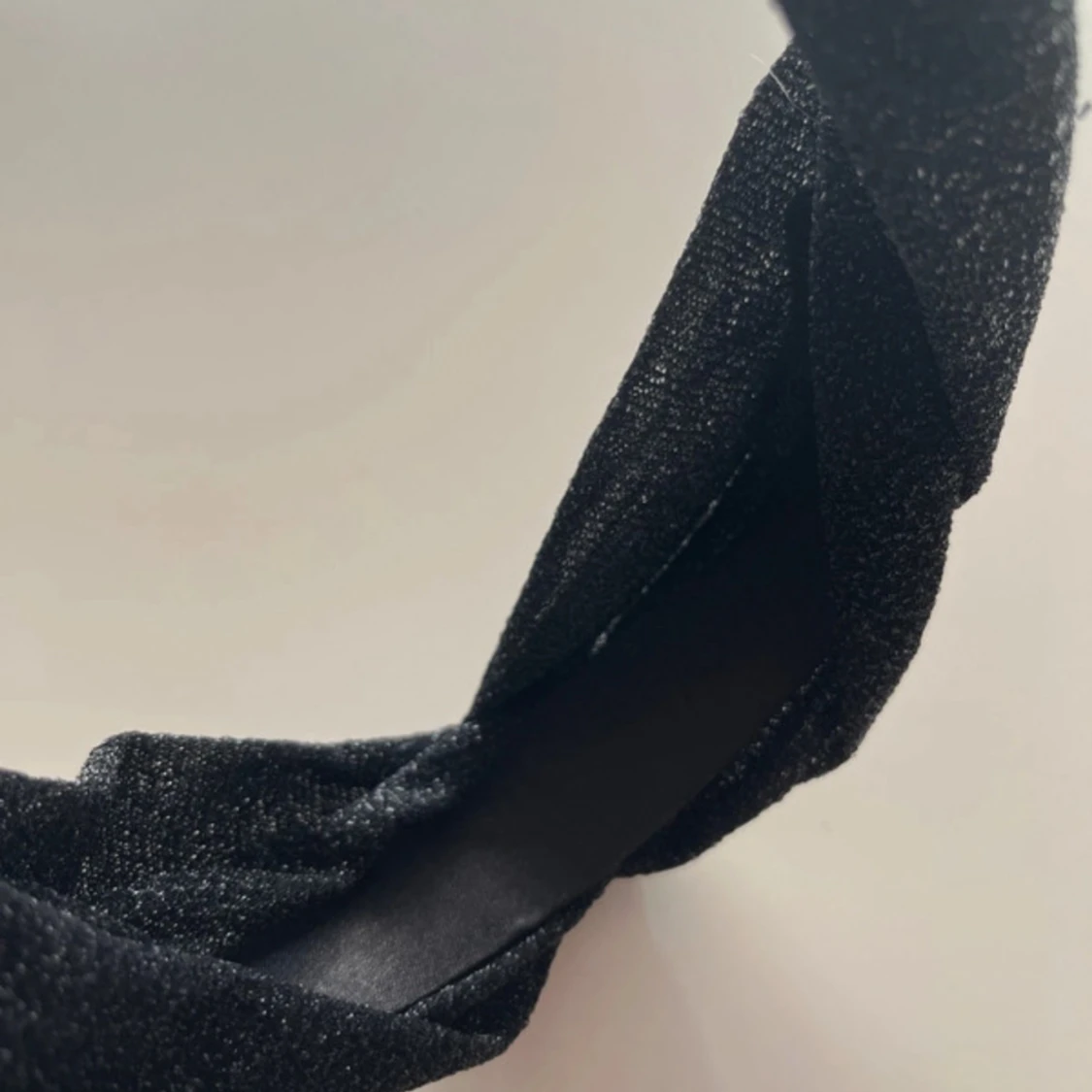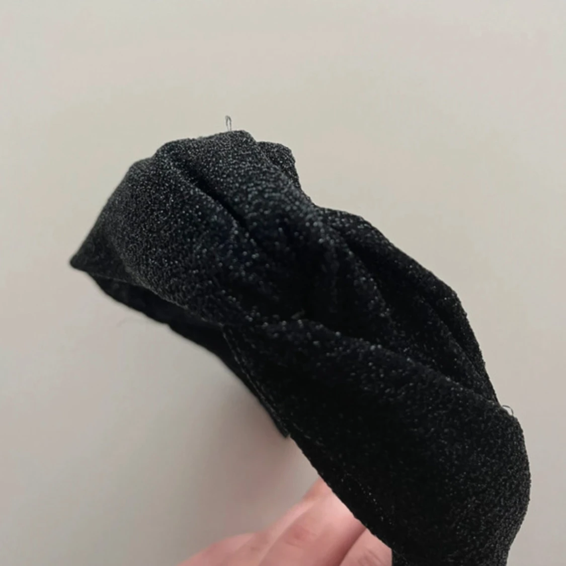 Snyggt svart diadem med glittrigt tyg och twistad detalj på ovansidan. Perfekt accessoar för att lyfta din look med lite extra shimmer. Fint skick!