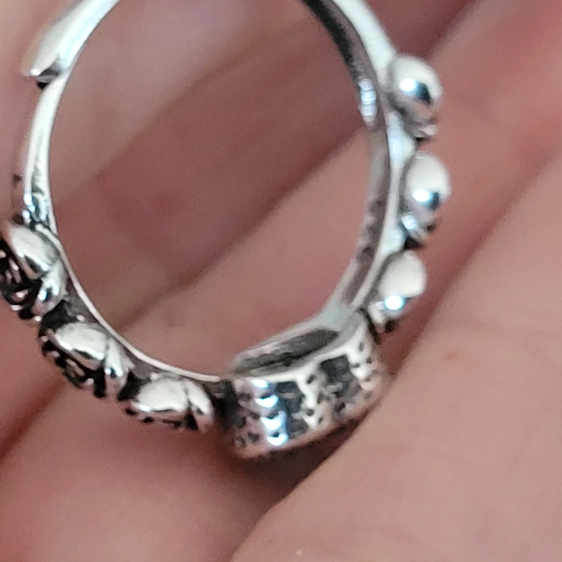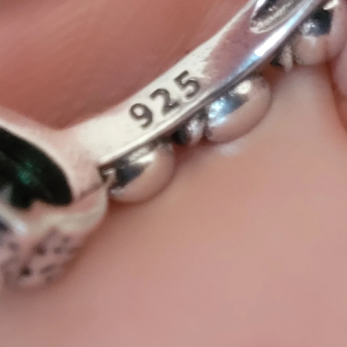 Helt ny Superfin silverring i 925 sterling silver med ett grönt hjärtformat stenhänge i mitten. Ringen har detaljerade små rosor runt hela bandet som ger en romantisk vibe. Perfekt för dig som gillar unika smycken med lite extra känsla. Justerbar kommer passa de flesta fingrar