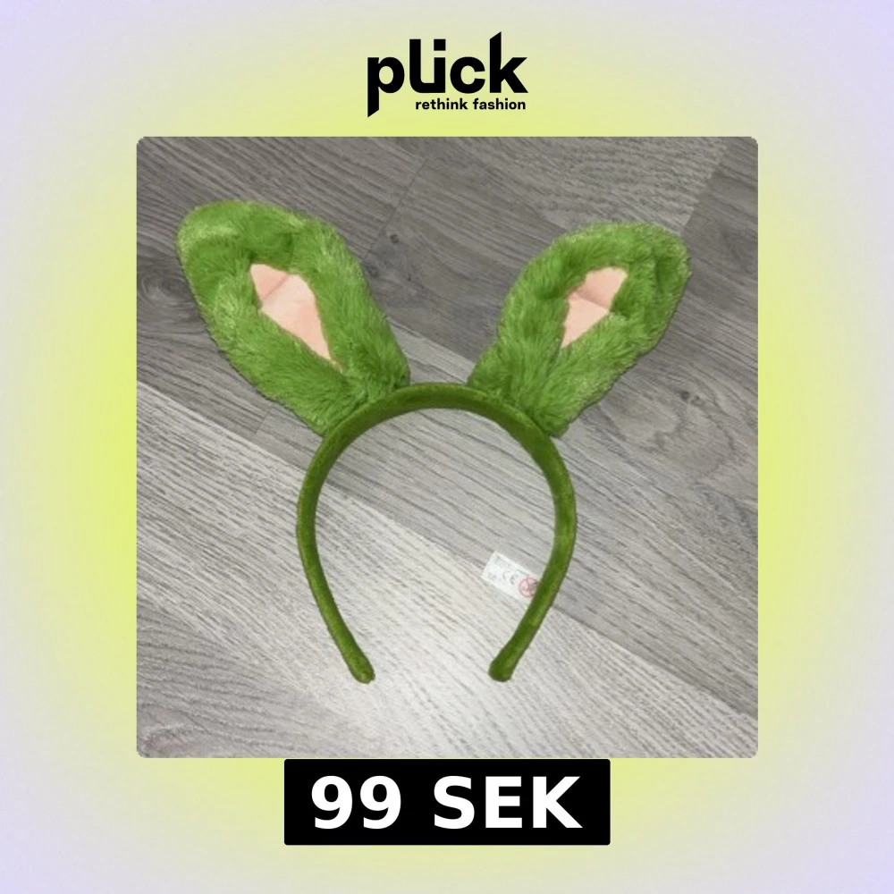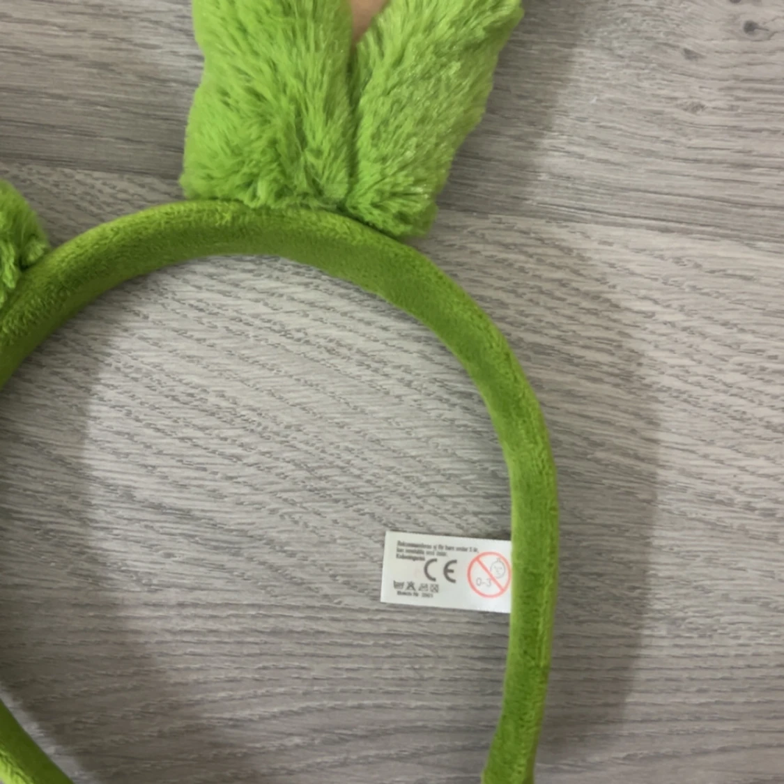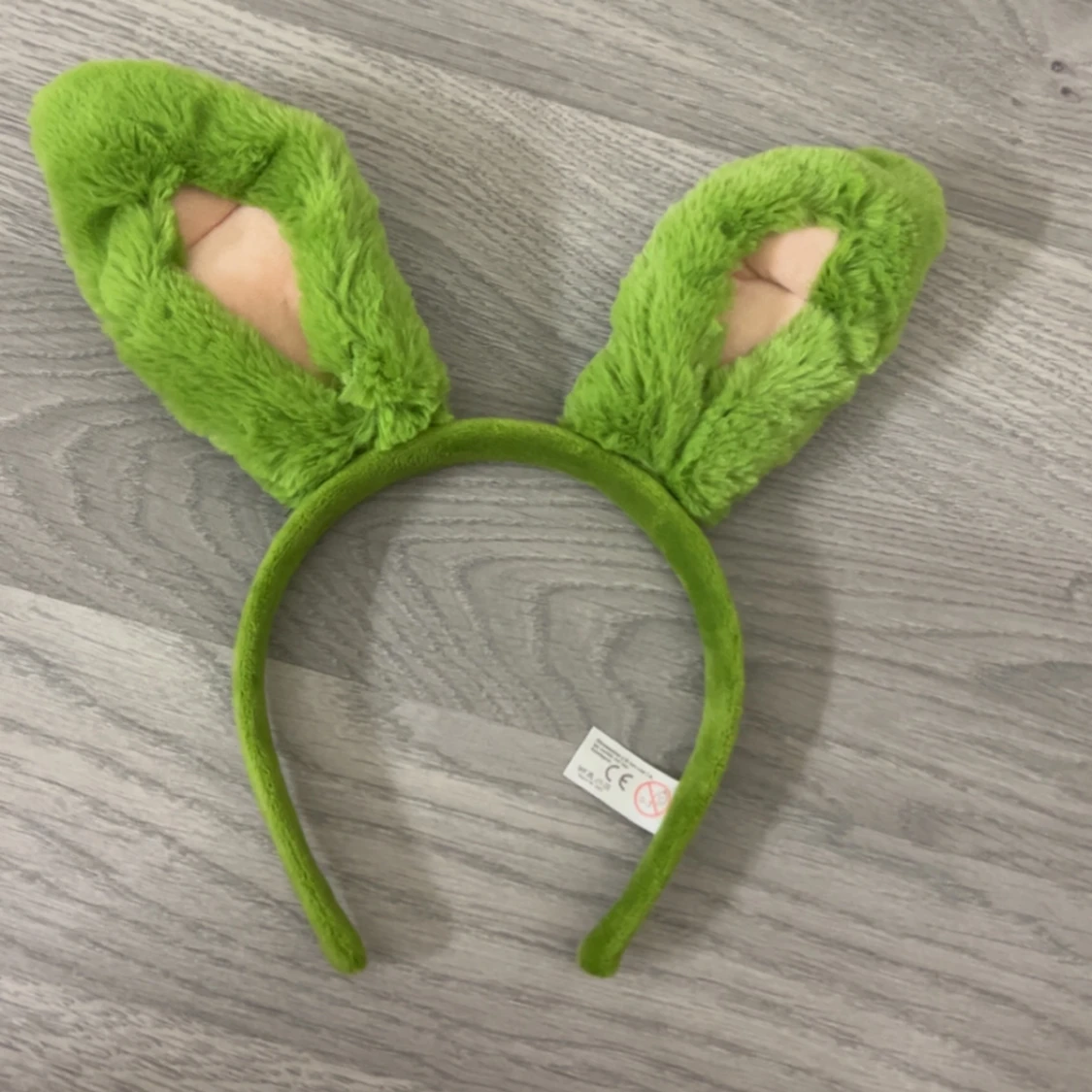 Ett fluffigt grönt diadem med stora kaninöron från Liseberg. Öronen är täckta av mjuk plysch och har ljusrosa insida. Perfekt accessoar för att sticka ut på temadagar eller maskerad. Diademet är böjbart och sitter bekvämt på huvudet.