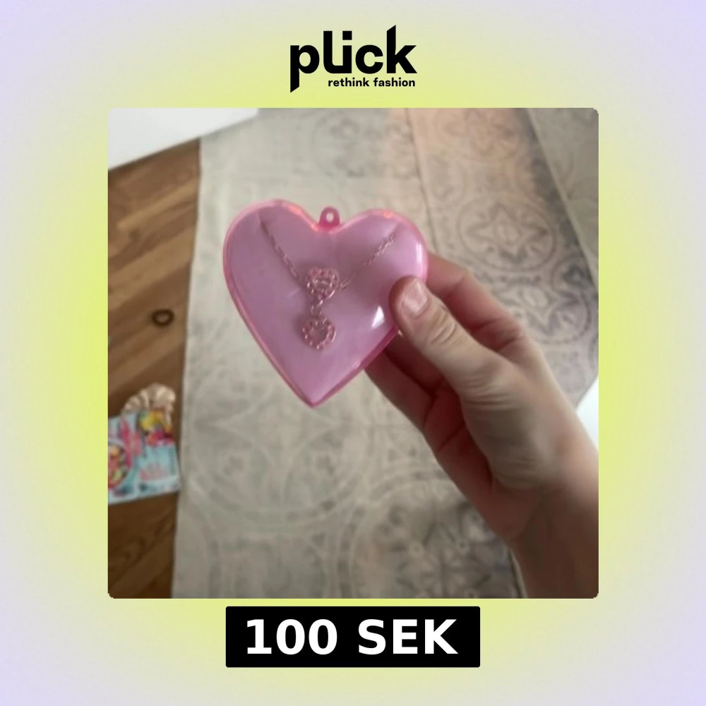 Säljer ett gulligt halsband med två silverfärgade hjärtanhängen, dekorerade med rosa prickar. Kommer i en rosa hjärtformad ask som gör det extra fint att ge bort. Perfekt accessoar för dig som gillar söta detaljer och lite extra färg.