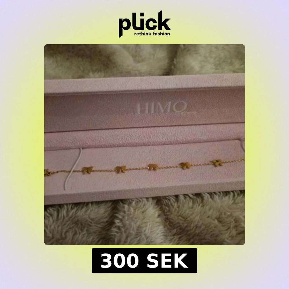 Supersött armband i guld från HIMO med små fjärilar längs hela kedjan. Kommer i en lyxig rosa ask och är perfekt för dig som vill ha något gulligt och unikt på handleden. Kedjan är tunn och fjärilarna ger en lekfull vibe. OBS lådan ingår inte