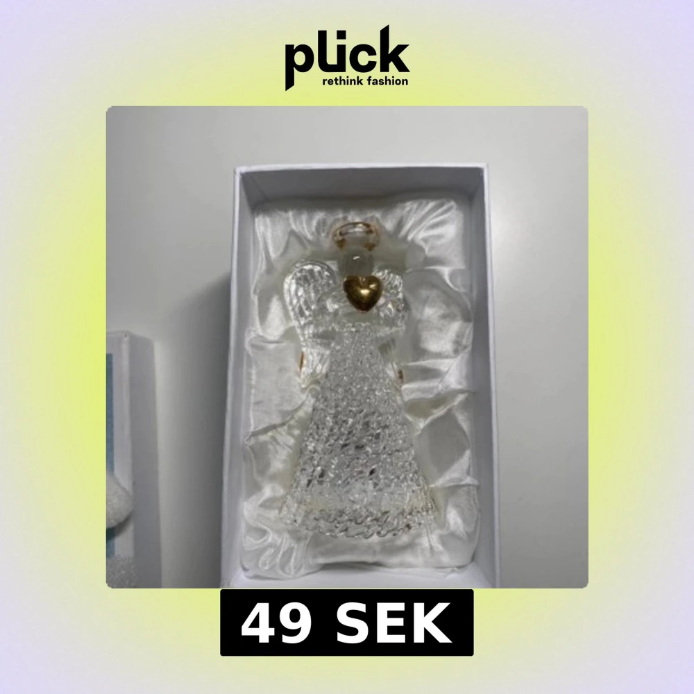 En dekorativ glasängel med ett skimrande guldhjärta och glittriga detaljer. Ängeln har vackra vingar och en guldig gloria, perfekt som prydnad eller present. Levereras i en fin ask med satinliknande inredning.