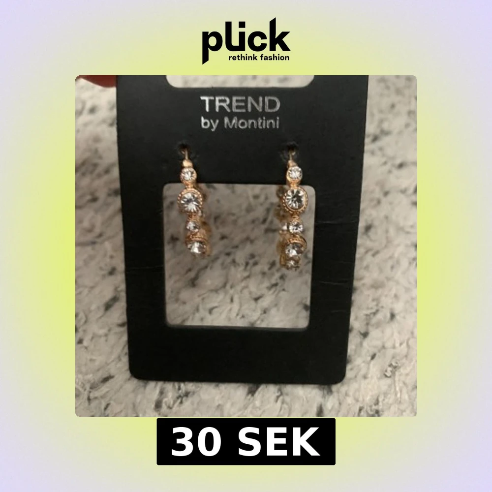 Snygga guldiga örhängen från Montini med flera glittrande stenar i rad. Halvbågsformade och perfekta för att ge lite extra bling till din look. Klassisk design som passar till många stilar. Helt nya!!
