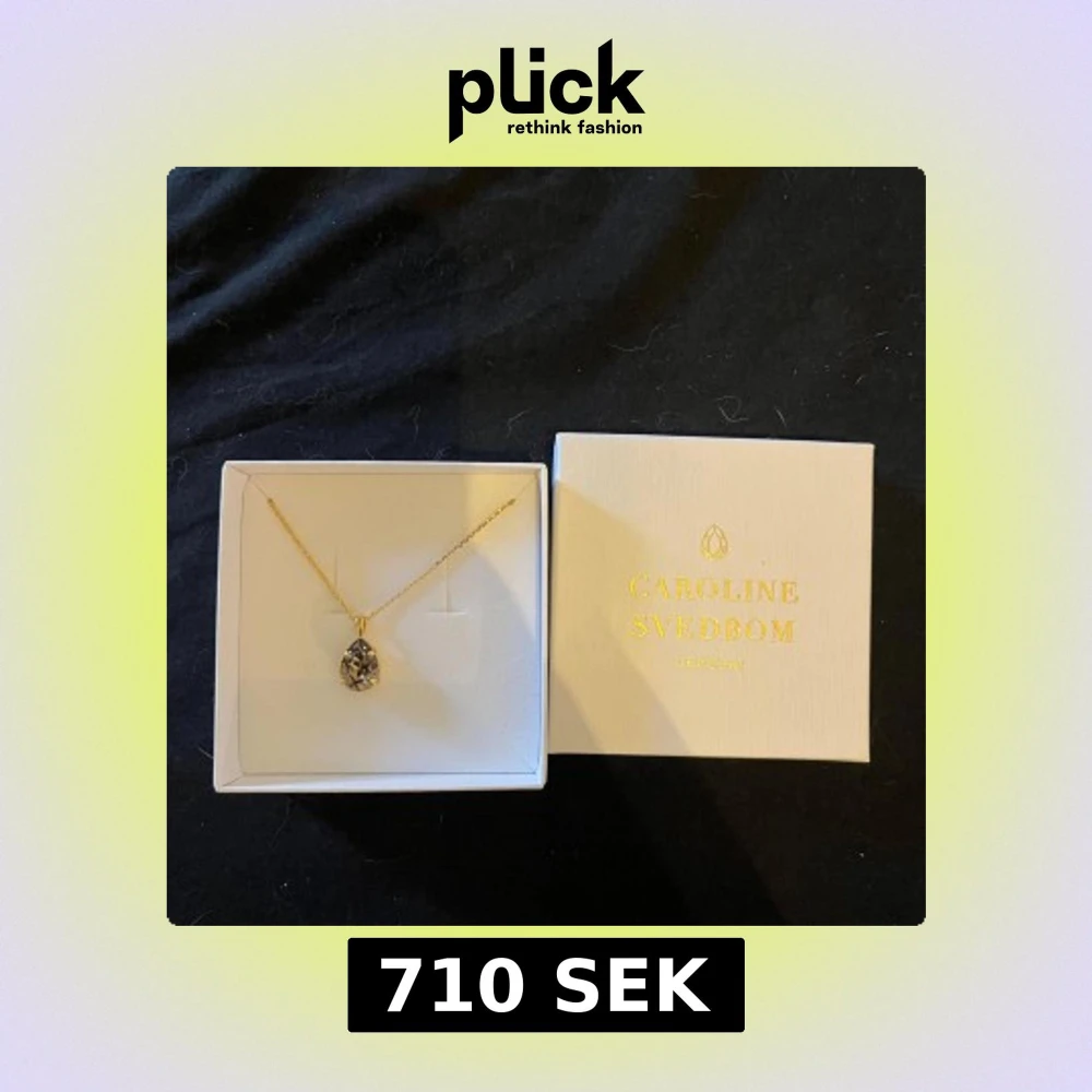 Stilrent halsband från Caroline Svedbom med tunn guldfärgad kedja och en droppformad, glittrig kristall i mitten. Kommer i originalask och är perfekt för dig som vill ha något elegant och iögonfallande.
