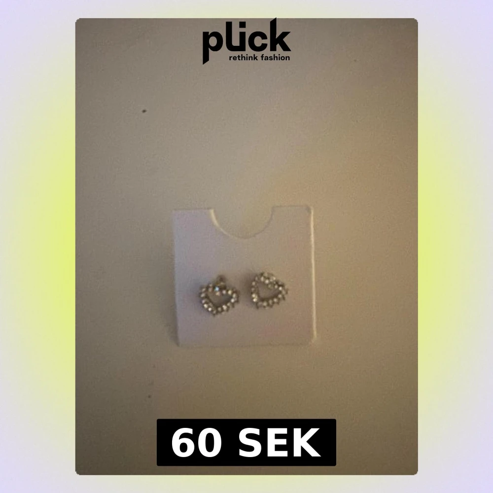 Säljer ett par söta silvriga örhängen i form av hjärtan, dekorerade med små glittrande stenar runt hela kanten , helt oandvända 💕