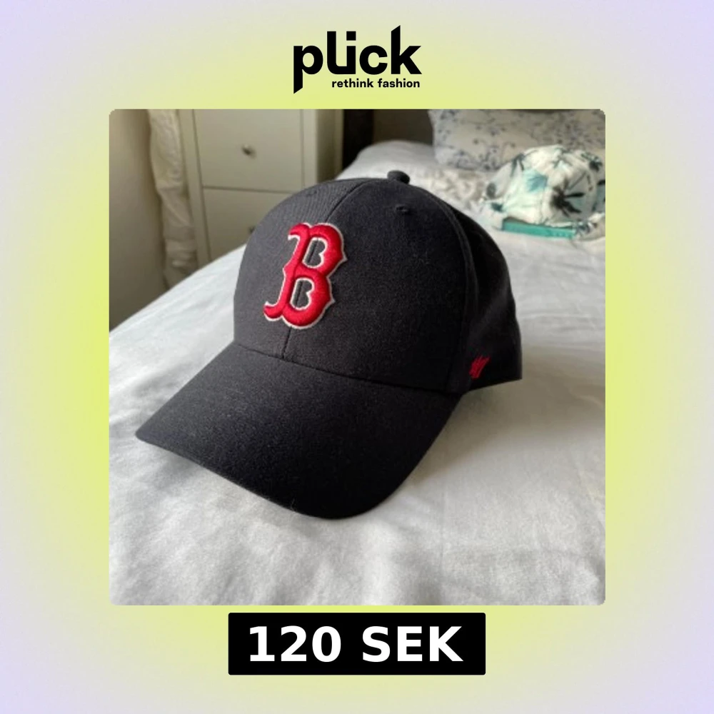 Snygg svart keps från 47 med en stor röd broderad bokstav B på framsidan. Kepsen har justerbar rem baktill med texten 'Red Sox'. Perfekt för sportiga tillfällen eller som en stilren accessoar.