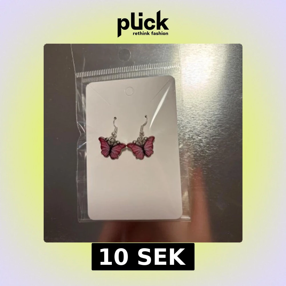 Snygga rosa fjärilsörhängen med silverdetaljer. Perfekta för att lägga till en färgglad touch till din outfit. De hänger fint och är lätta att bära. (Billigt material)