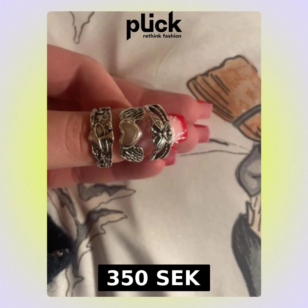 6st silver ringar, helt onanvända! Den första bilden ringen längst åt vänster är storlek ungefär 21mm och dom två åt höger ungefär 19,5mm. Bild två är alla ringar justerbara (se bild tre) pris kan diskuteras!! Priset nu är för alla 6 ringar! Skriv om frågor!