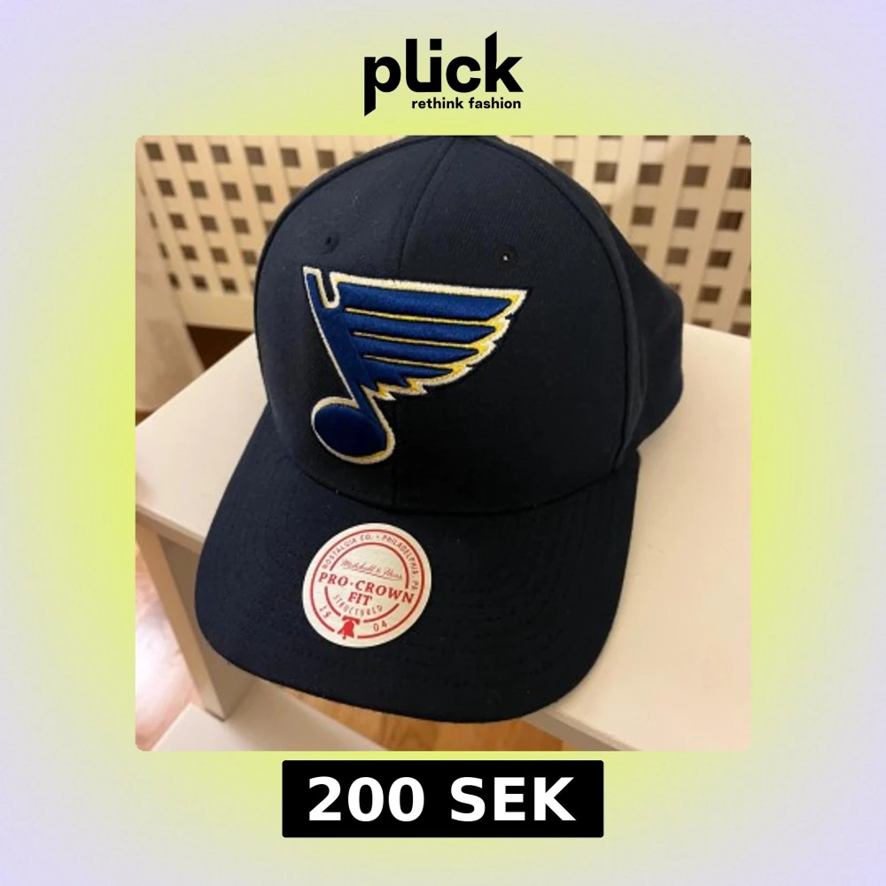Snygg mörkblå keps från Mitchell & Ness med St. Louis Blues-logga broderad framtill i blått och gult. Klassisk Pro Crown Fit-modell med böjd skärm och strukturerad passform. Perfekt för hockeyfans som vill sticka ut.