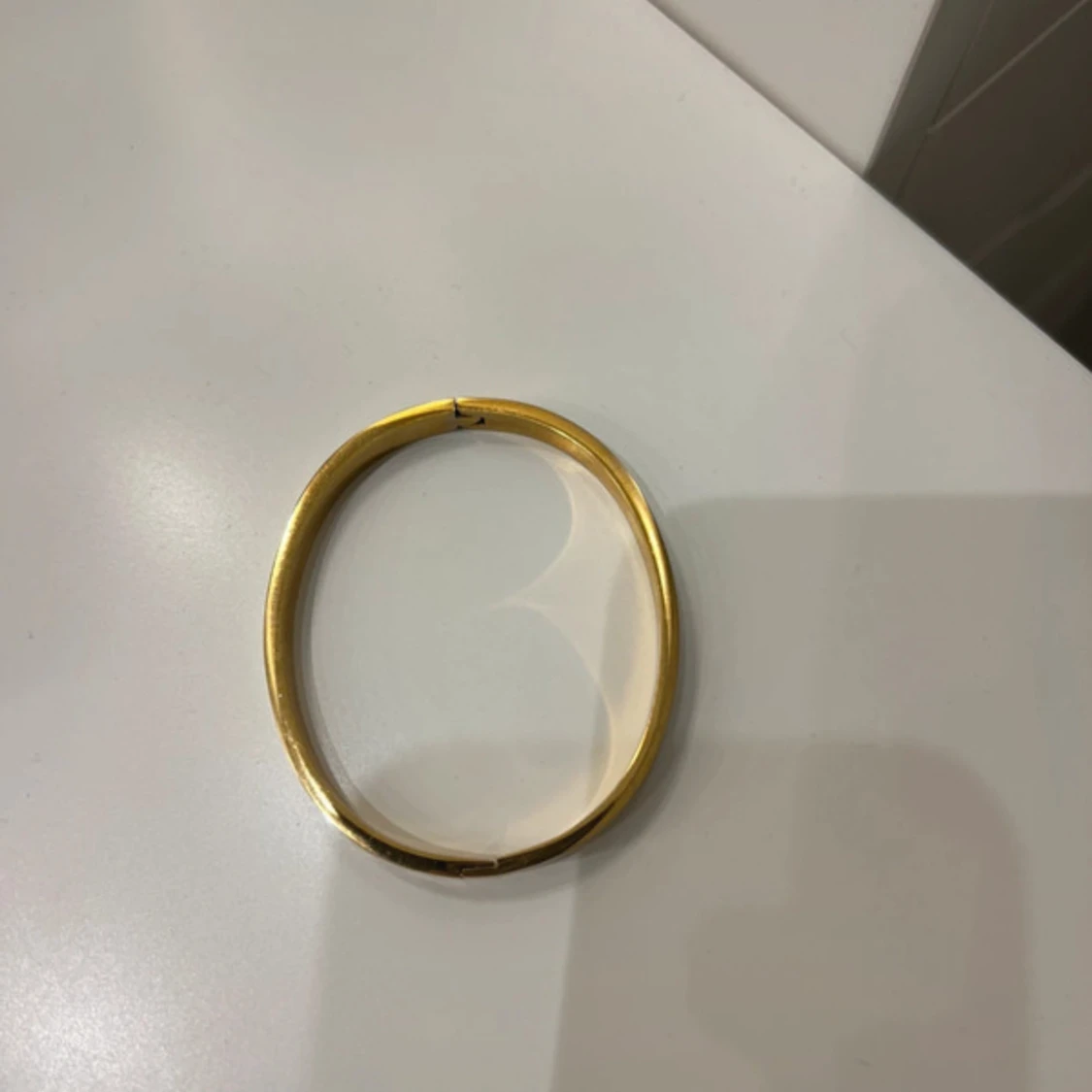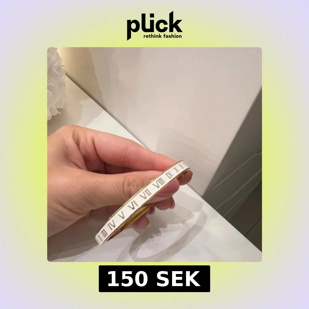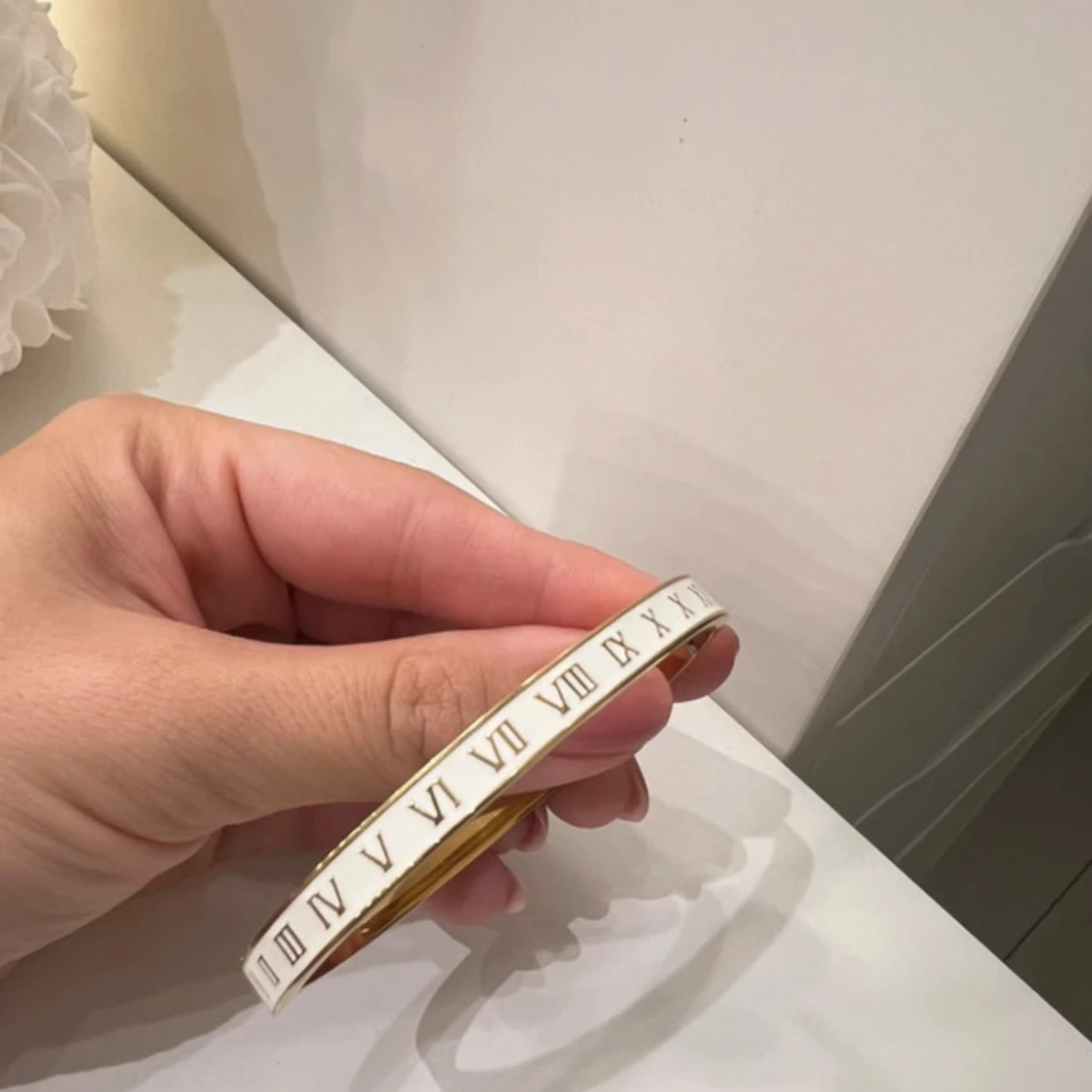 Snyggt armband i vit och guld färg med romerska siffror runt hela bandet. Stilren och modern design som ger en cool touch till din outfit. Armbandet är hårt och har en oval form, perfekt för dig som gillar minimalistiska detaljer.