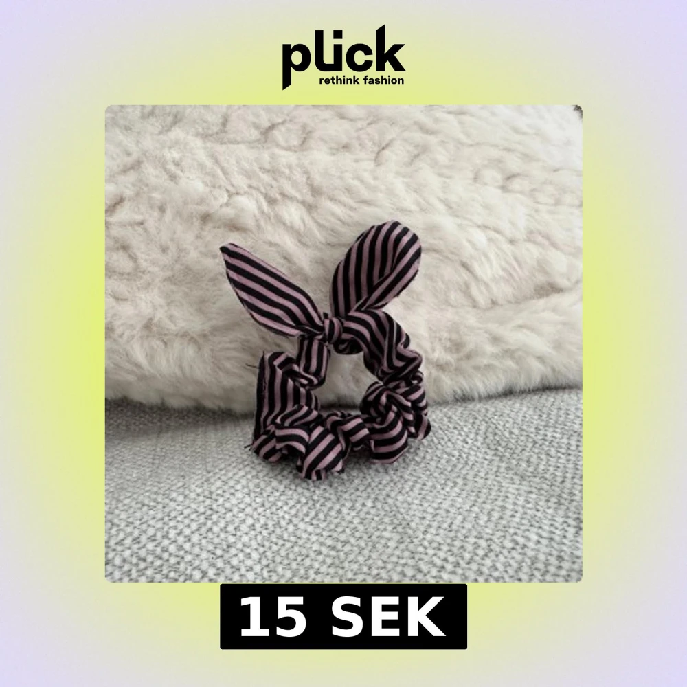 Snyggt scrunchie med rosett i lila och svart randigt mönster. Perfekt för att ge en extra touch till din outfit.