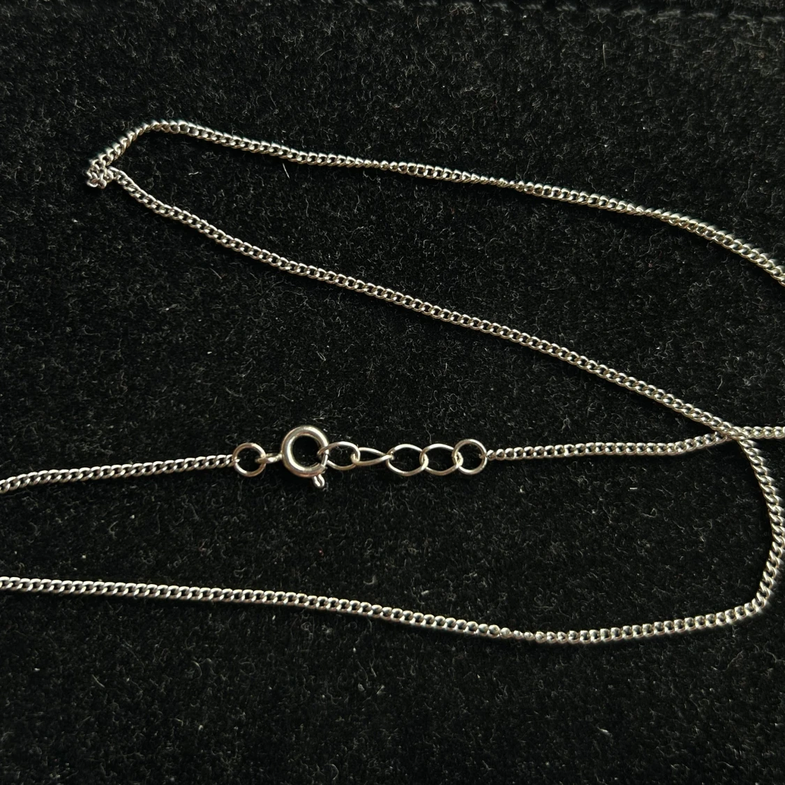 Ett stilrent och tunt halsband i silver med klassisk kedja och justerbar längd. Perfekt att bära som det är eller kombinera med andra smycken för en personlig look. Liten rund låsring för enkel användning.