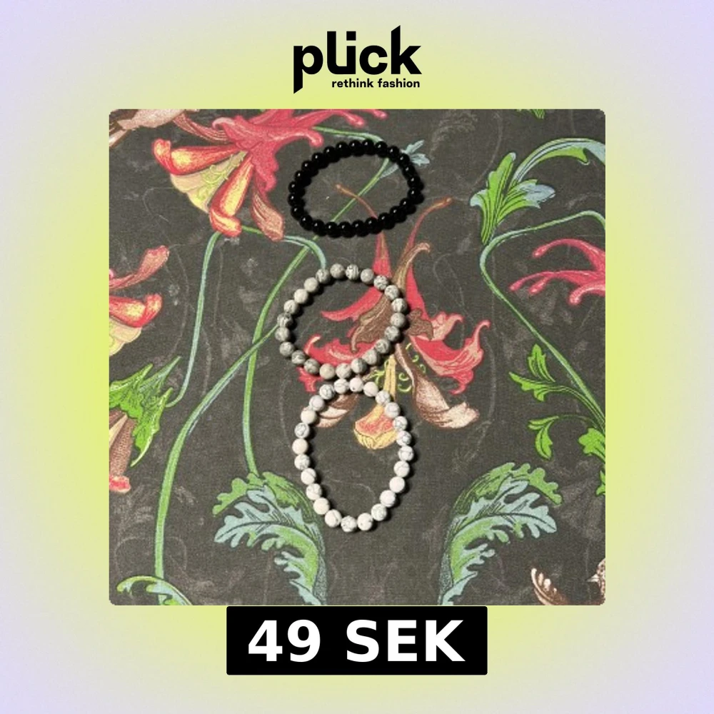 Snyggt set med tre elastiska pärlarmband. Ett armband är helsvart med glansiga pärlor, ett är vitt med grå marmorering och ett är grått med mörkare marmorering. Perfekt för att mixa och matcha till din stil. Passar både som statement eller i lager med andra smycken.