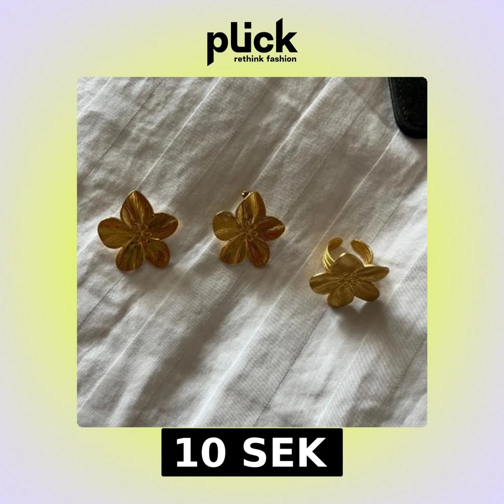Guldiga blomformade örhängen och ring