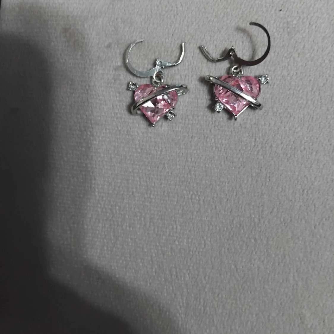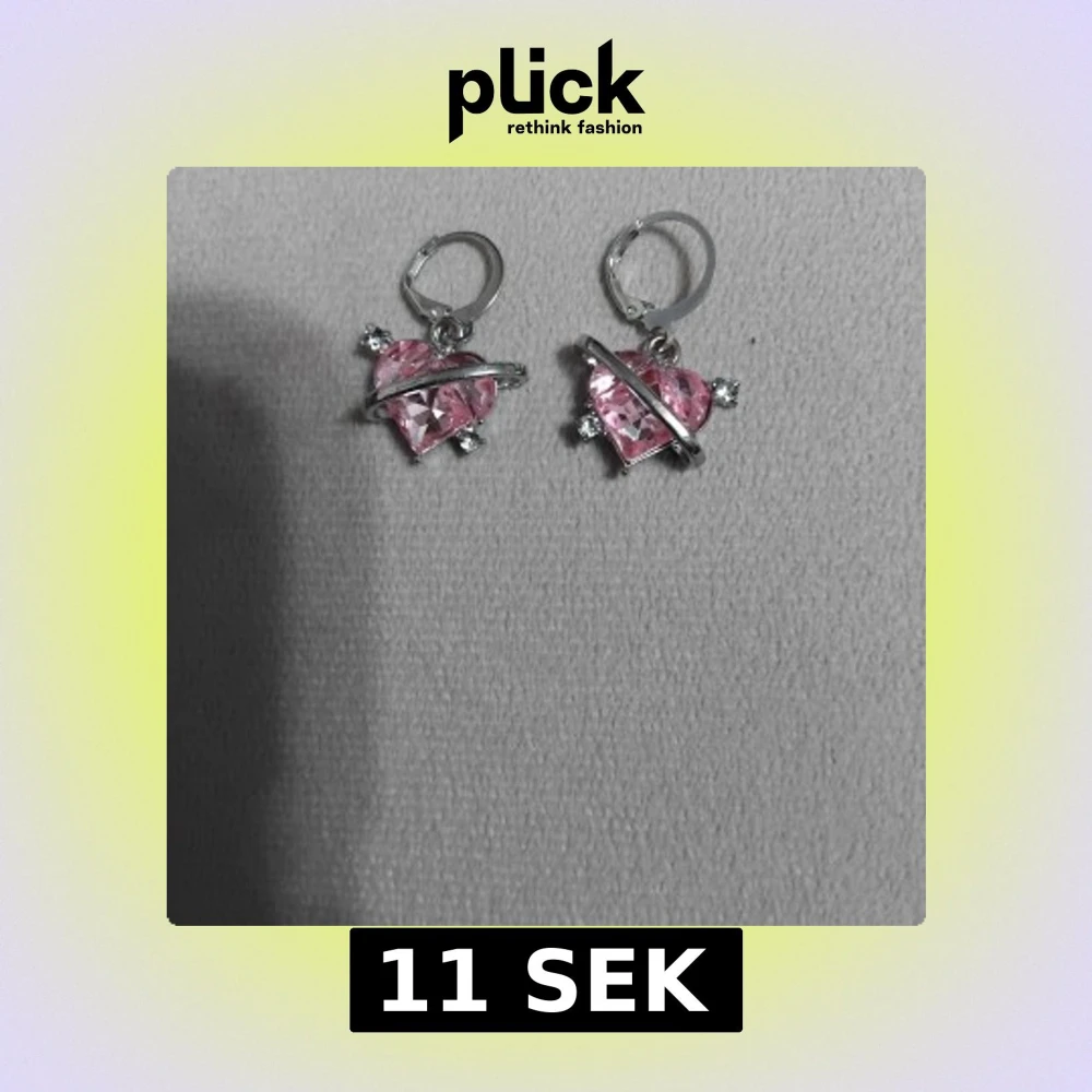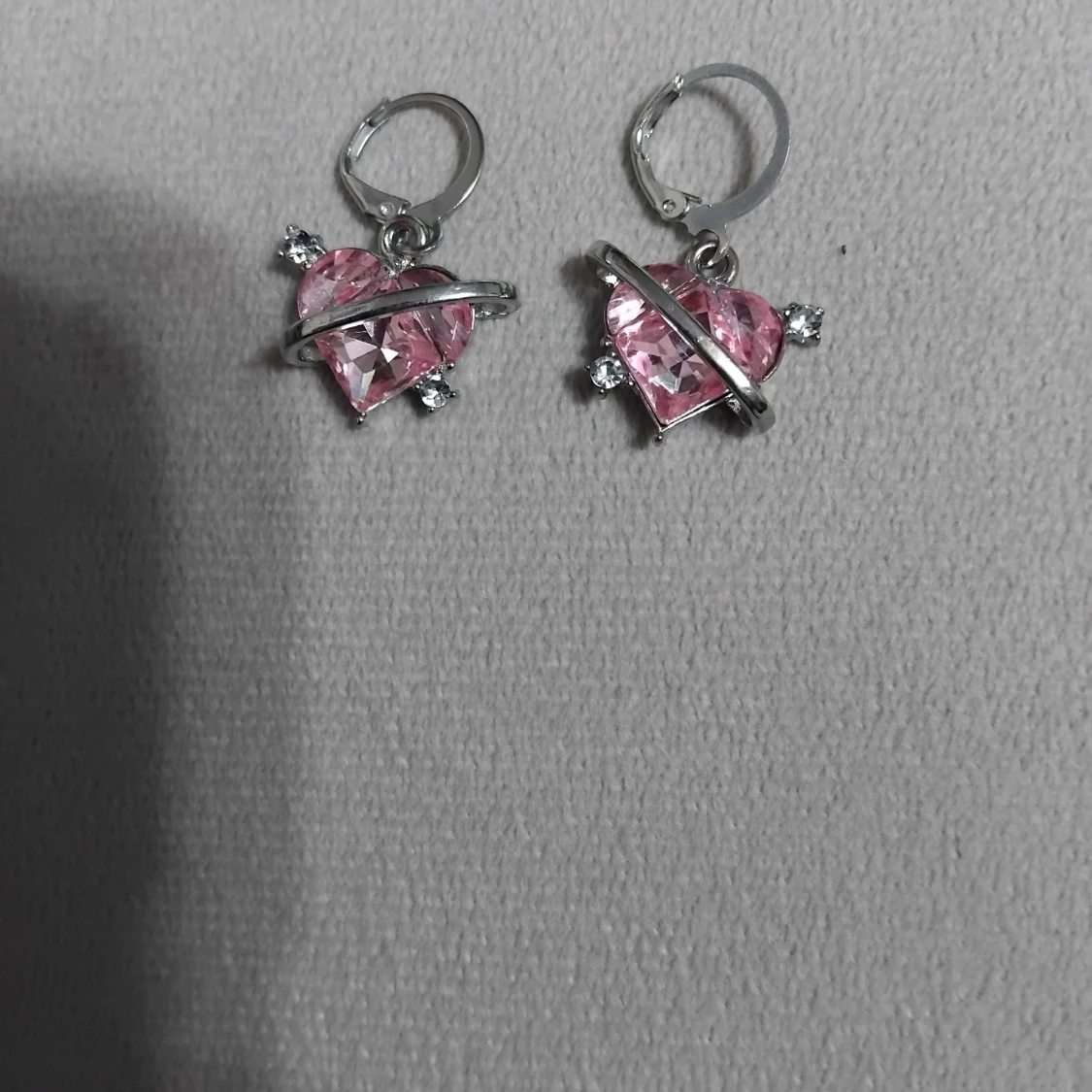 Supersöta örhängen med hjärtformade rosa stenar och silverfärgade detaljer. Hängena har en glittrig känsla med små klara stenar och en unik design där en silverfärgad båge går över hjärtat. Perfekta för att ge din look en söt och trendig touch.