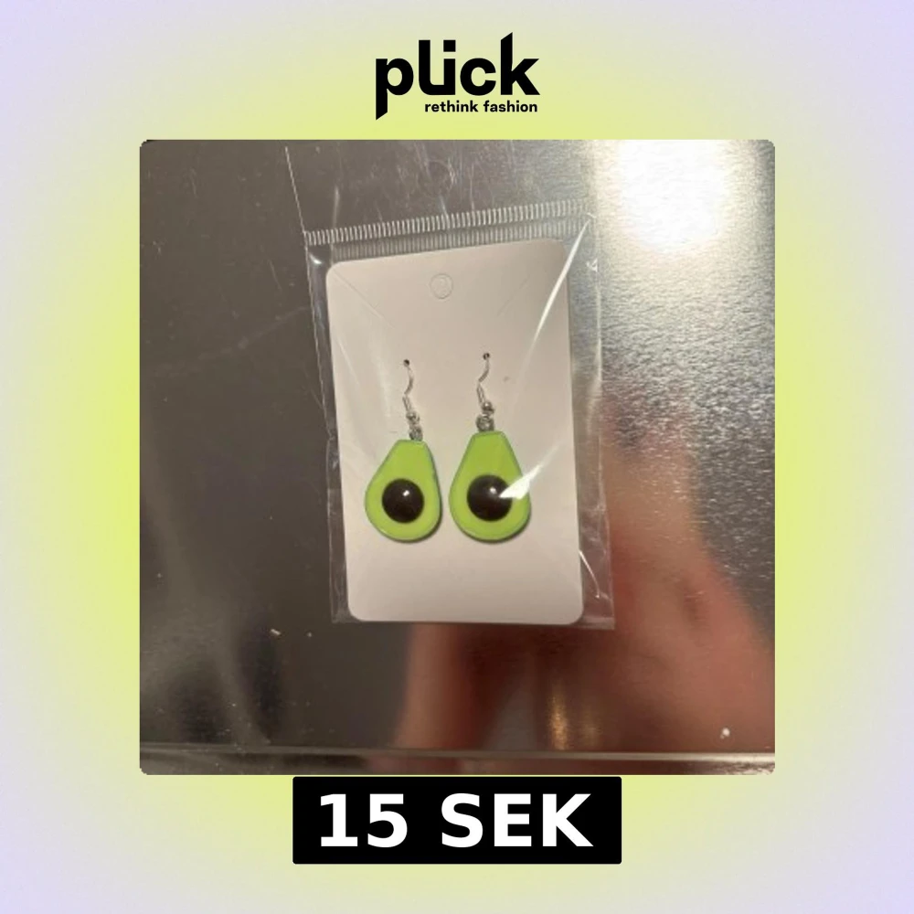 Säljer ett par roliga örhängen i form av avokado. De är gröna med en brun kärna och har en krok för enkel användning. Perfekta för att ge en färgglad touch till din outfit! Finns 2 par. (Billigt material)