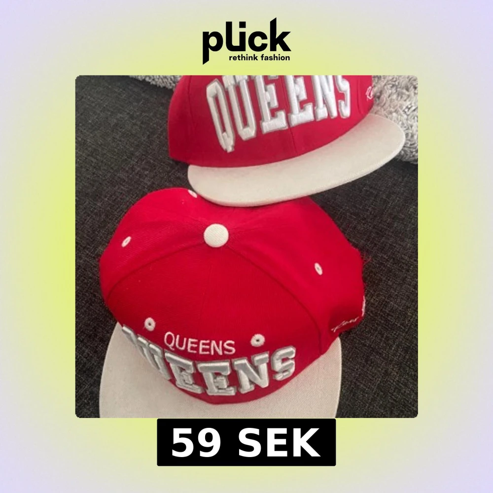 Snygg röd keps med vit broderad text 'QUEENS' framtill. Kepsen har en justerbar rem baktill för perfekt passform. Perfekt för en avslappnad stil. Du får med en annan queens keps på köpet som är lite sönder men den andra är hel och är inte sönder.