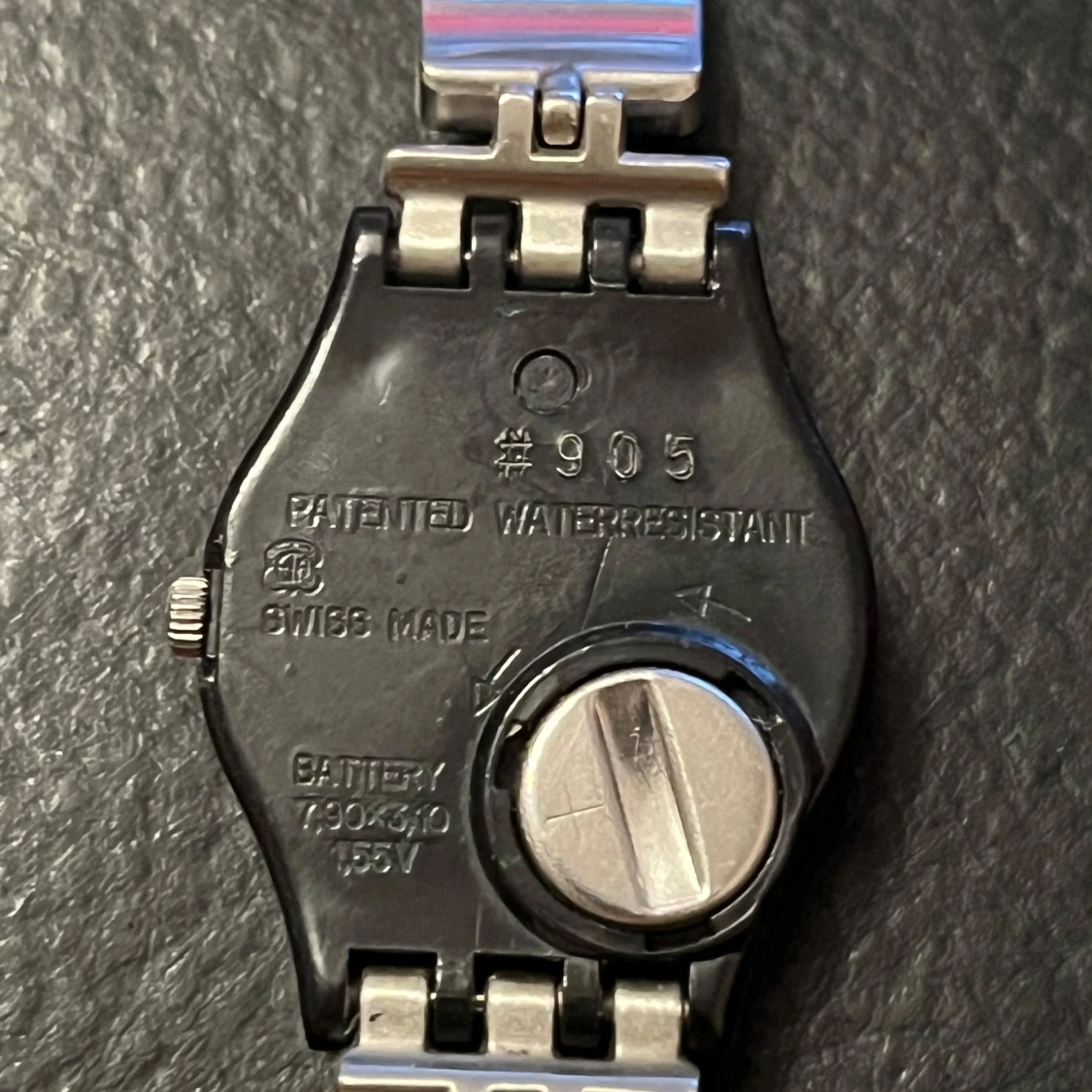 Snygg klocka från Swatch med svart urtavla och silverdetaljer. Armbandet har ett unikt mönster med fyrkantiga länkar i svart och silver. Klockan är vattentålig och tillverkad i Schweiz. Perfekt för dig som gillar stilrena accessoarer.