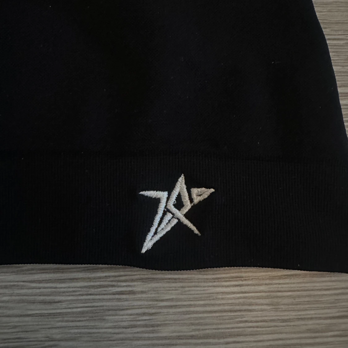 Svart, stilren mössa med en vit broderad stjärna framtill. Mössan har en enkel och tight passform, perfekt för dig som gillar minimalistisk design. Materialet känns mjukt och stretchigt, vilket gör den skön att bära under kyliga dagar.