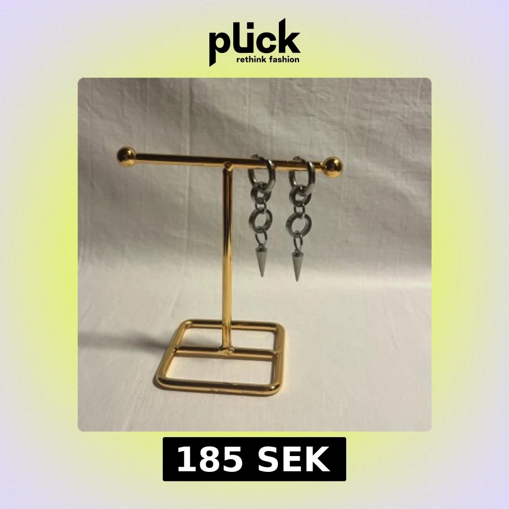 Säljer ett par coola silvriga örhängen med kedjor och spetsiga spikes längst ner. Örhängena har ringar i metall som är sammankopplade och ger en edgy vibe. Perfekt för dig som gillar att sticka ut med din stil.