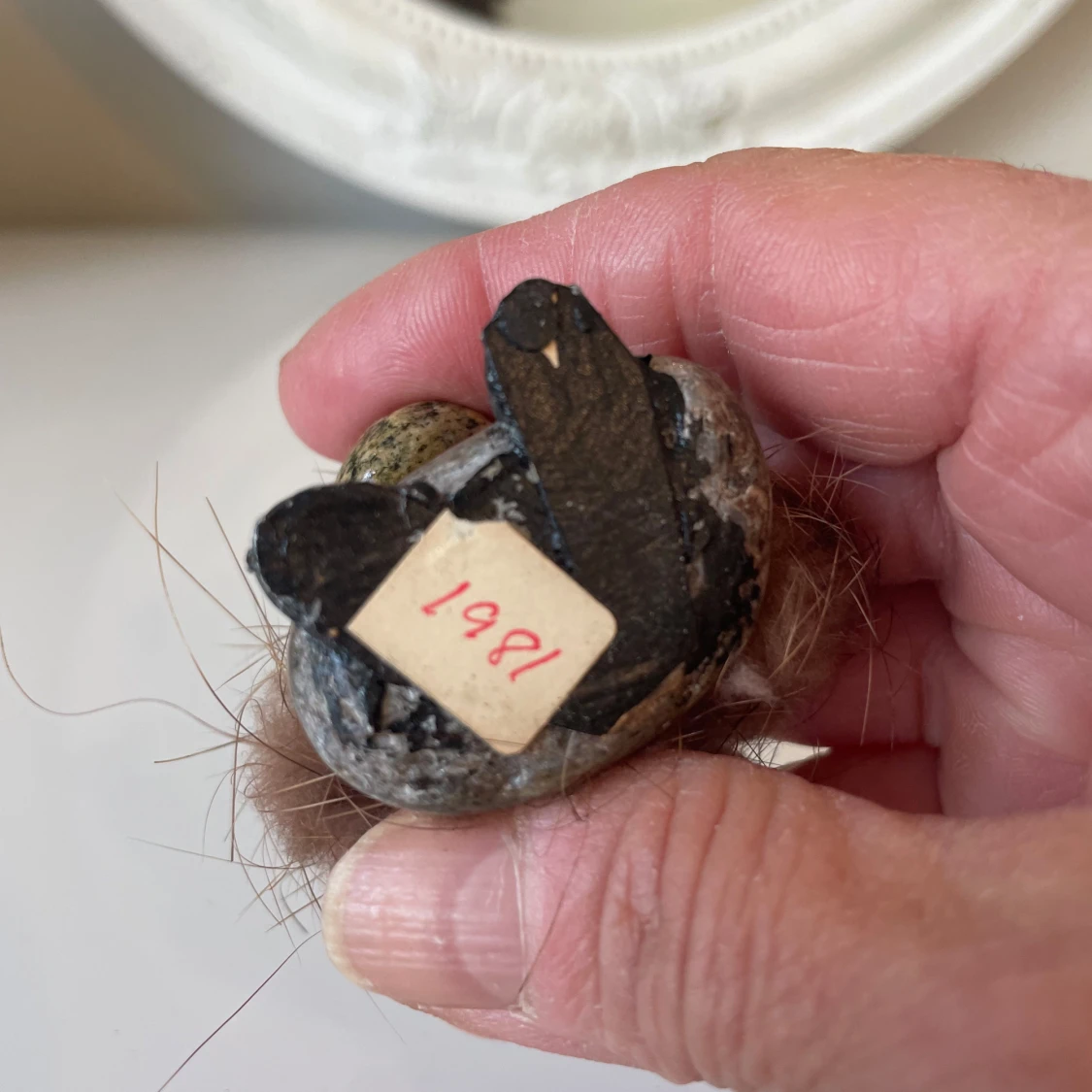 Charmig liten trollfigur med en kropp av sten och lurvig päls på huvudet. Figuren har en unik design med detaljerade ansiktsdrag och små svarta fötter. Perfekt som en rolig inredningsdetalj eller samlarobjekt. Märkt med årtalet 1981 på undersidan.