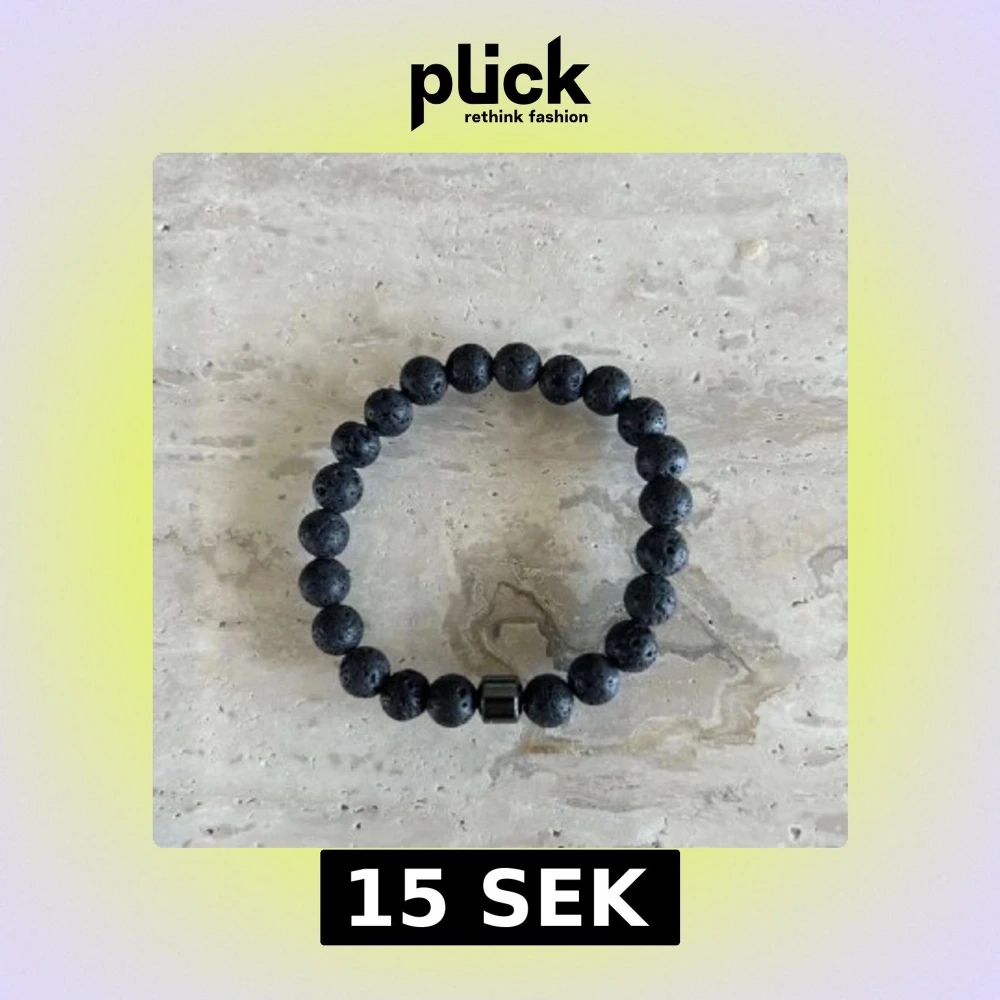 Snyggt svart armband med runda lavastenpärlor och en metallisk detalj. Perfekt accessoar för dig som gillar en stilren och cool look. Elastisk tråd gör det enkelt att ta på och av. Passar både killar och tjejer.