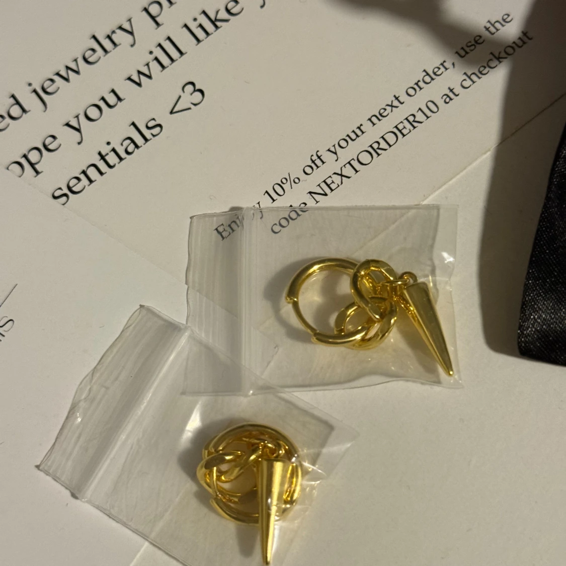 Säljer ett par coola guldiga örhängen från Alvaz Essentials. Säljer helt oanvända pågrund av att ja råka beställa dubbelt det är två stycken