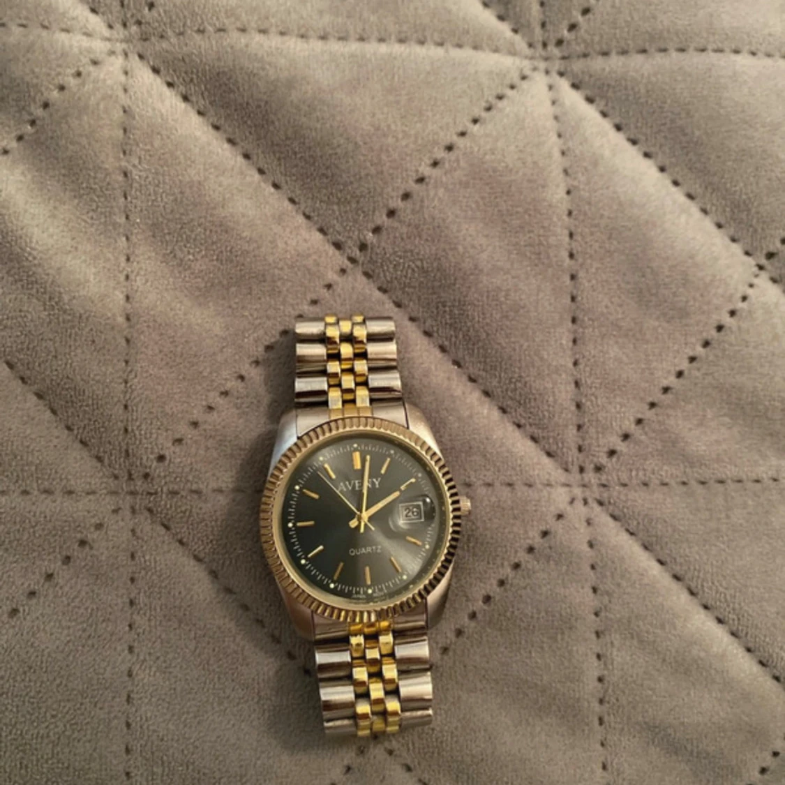 Stilren herrklocka från Avery med rund urtavla i mörkgrått och detaljer i guld. Armbandet är i klassisk länkdesign med både guld- och silverfärgade partier. Klockan har datumvisning och quartz-urverk. Perfekt för dig som gillar tidlös design och metalliska färger.