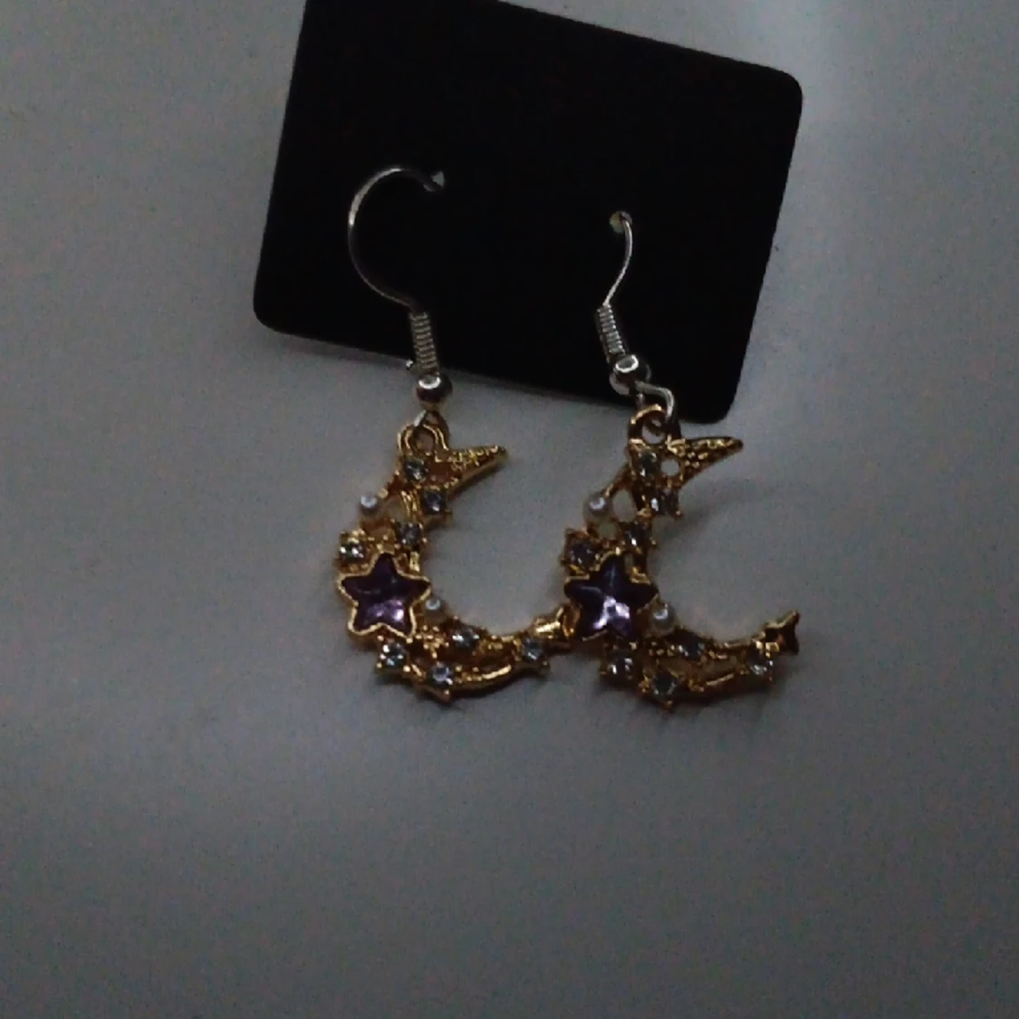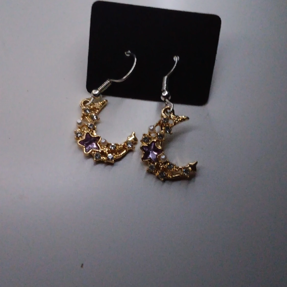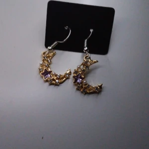 Guld mån örhänge med vita små pärlor och glittrande stenar