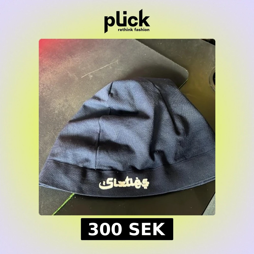 Snygg mörkblå mössa med vit broderad text framtill. Perfekt för kyliga dagar och en stilren look. Tillverkad i ett mjukt material som sitter bekvämt på huvudet.