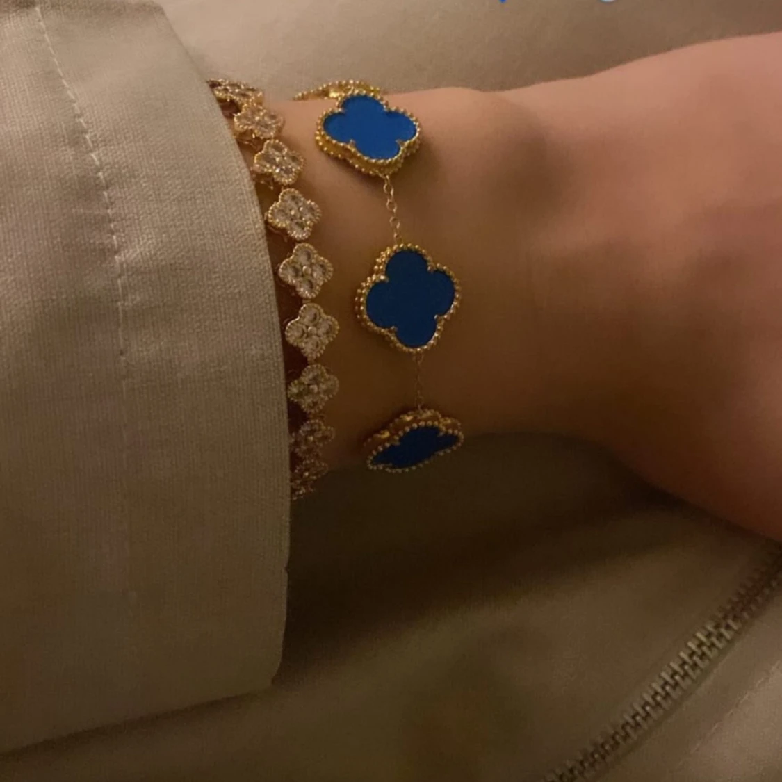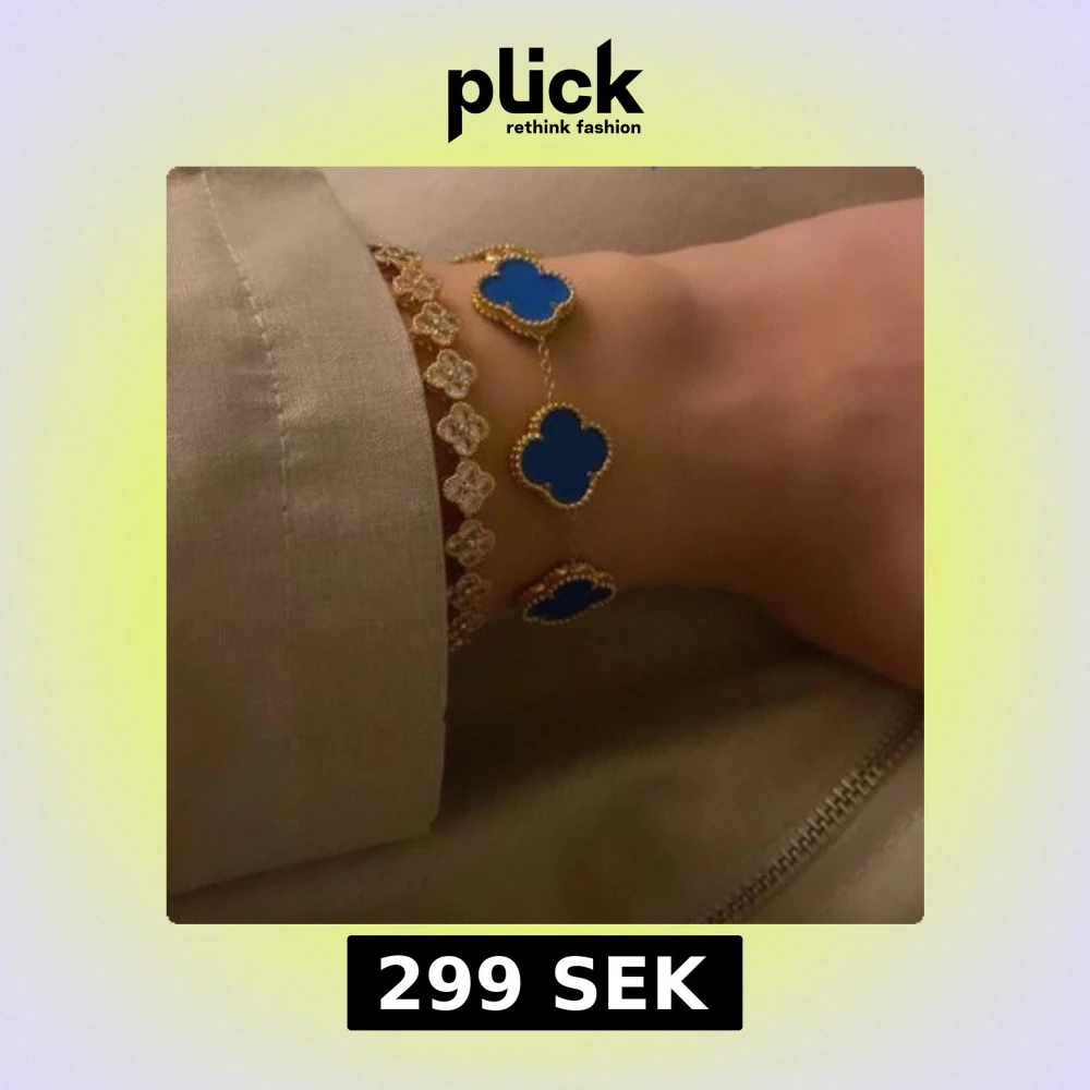 Blått klöver armband med rostfritt stål! Superfin aldrig använd