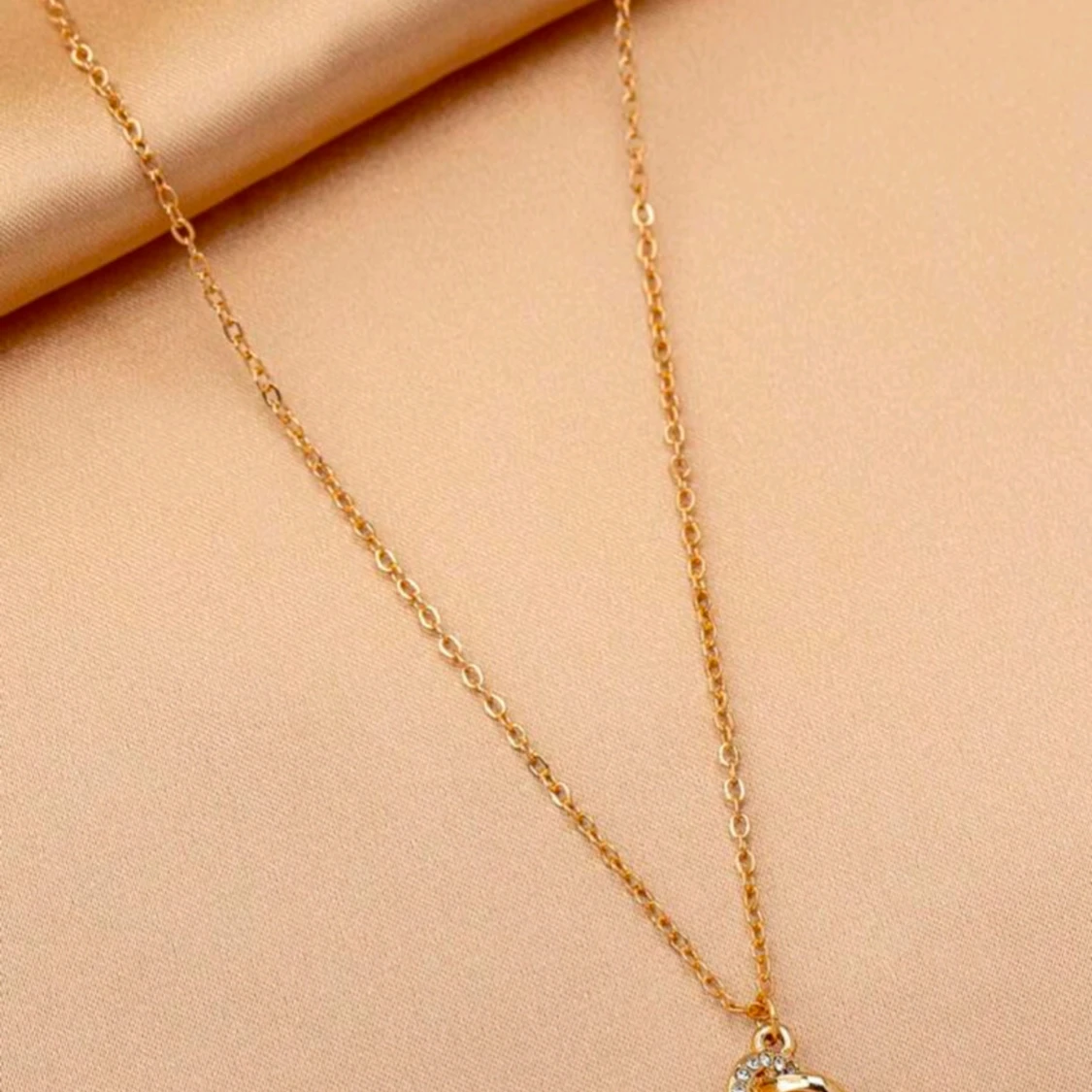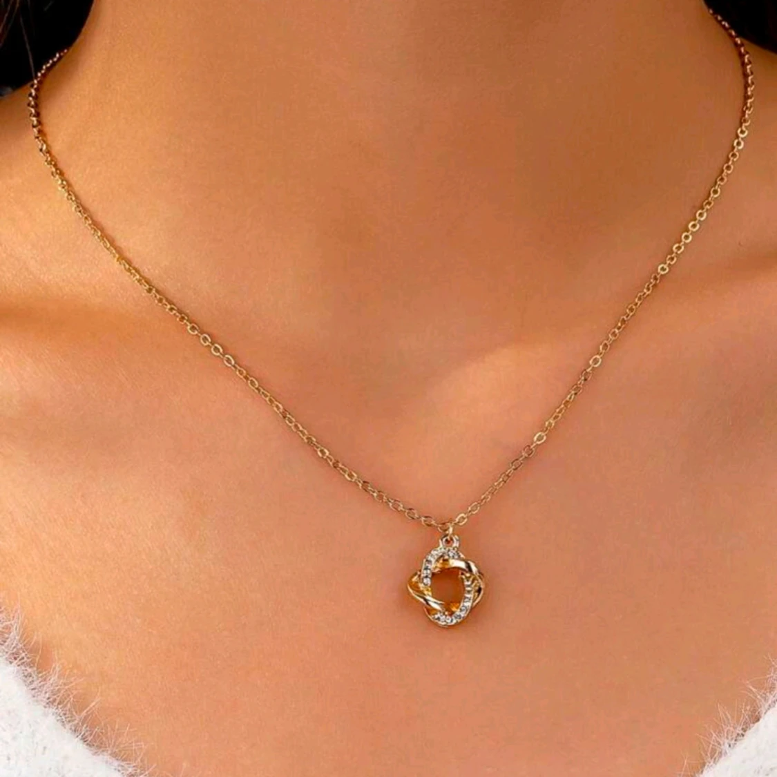 Elegant guldhalsband med ett unikt hänge format som en knut, dekorerat med gnistrande stenar. Perfekt för att ge en touch av glamour till din outfit.