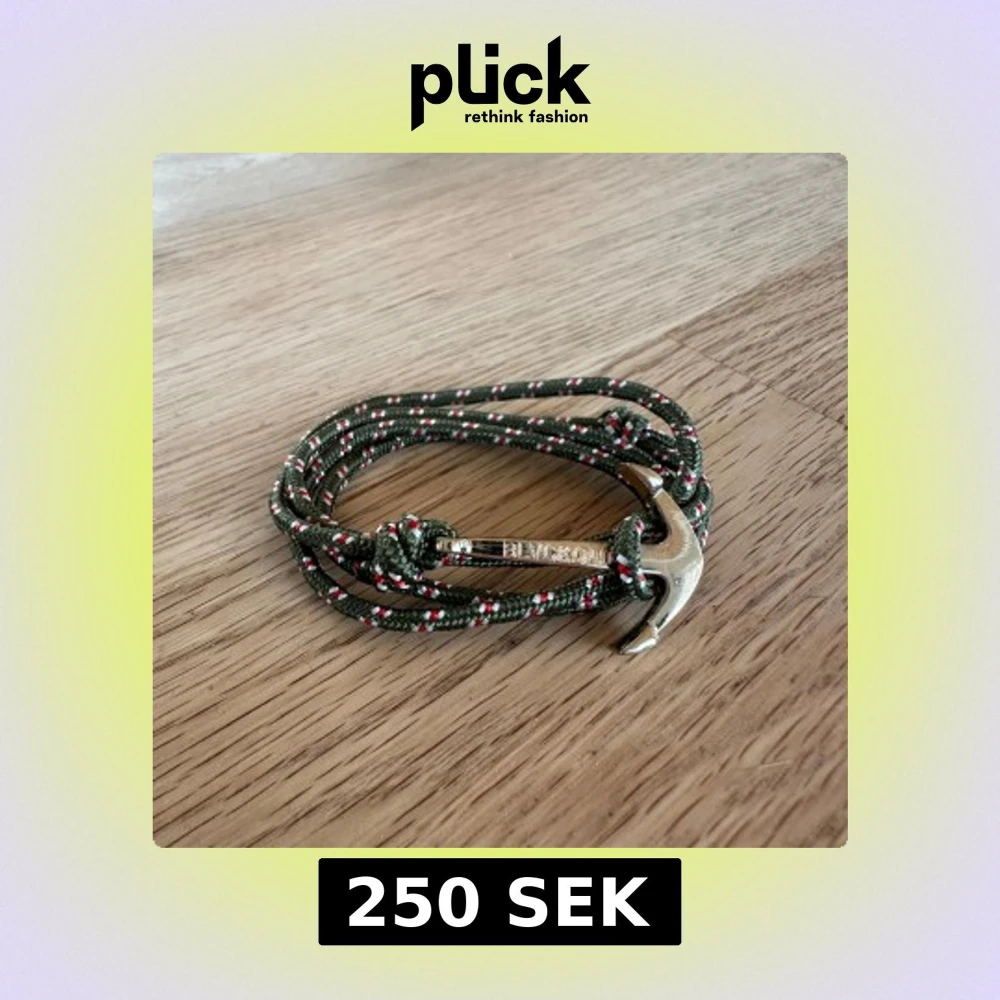 Snyggt armband från Blvckout med grön, vit och röd flätad snodd och ett silvrigt ankare som lås. Perfekt accessoar för dig som gillar nautisk stil och detaljer som sticker gillar att sticka ut. Ny pris 399