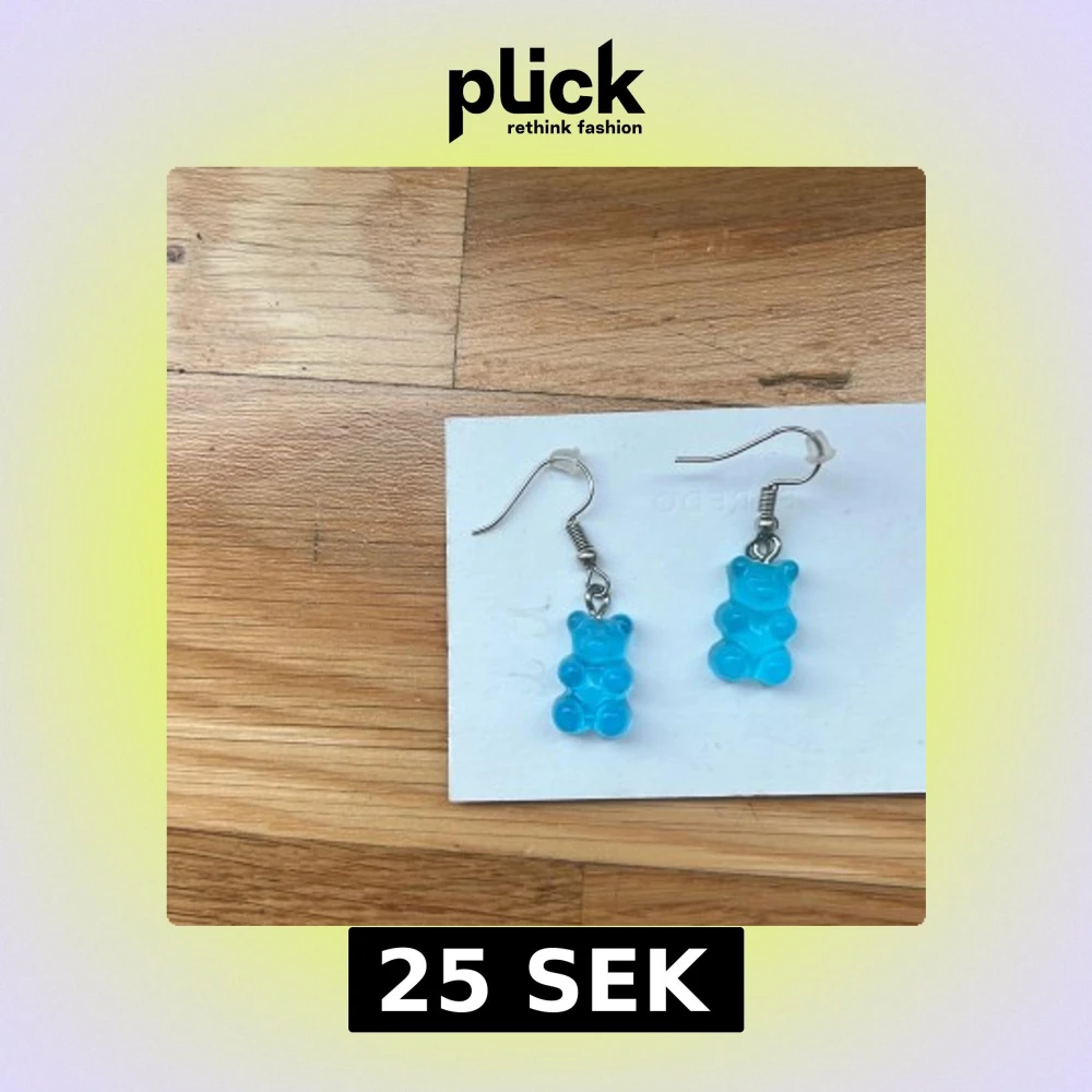 Supergulliga örhängen med blå björngummi-berlock som hänger från silvriga krokar. Perfekt för dig som vill ha något lekfullt och färgglatt i öronen. De är formade som små nallebjörnar och har en cool, glansig finish. Jag själv är nickelallergiker och har inte haft några problem.