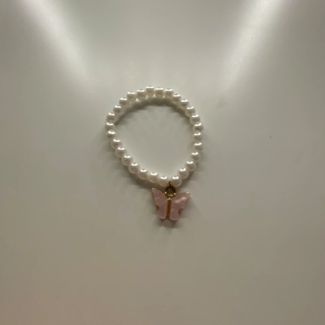 Superfint armband med vita pärlor och en söt fjäril som hänge. Finns i två varianter: en med ljusrosa fjäril och en med guldfärgad fjäril. Perfekt accessoar för dig som gillar gulliga detaljer.🫶🏻