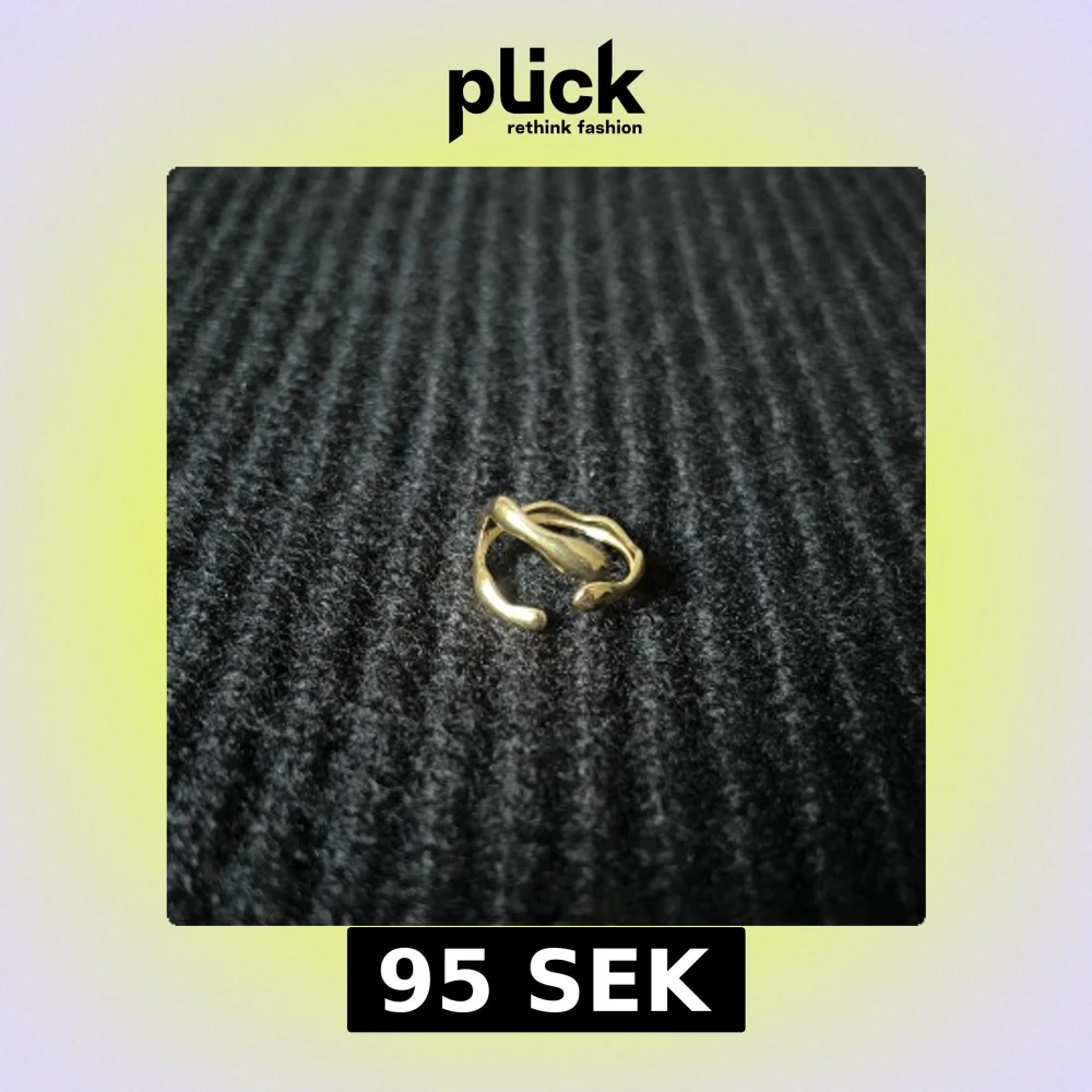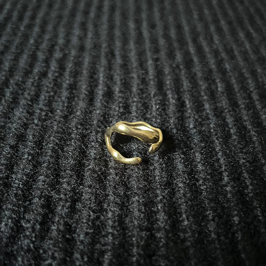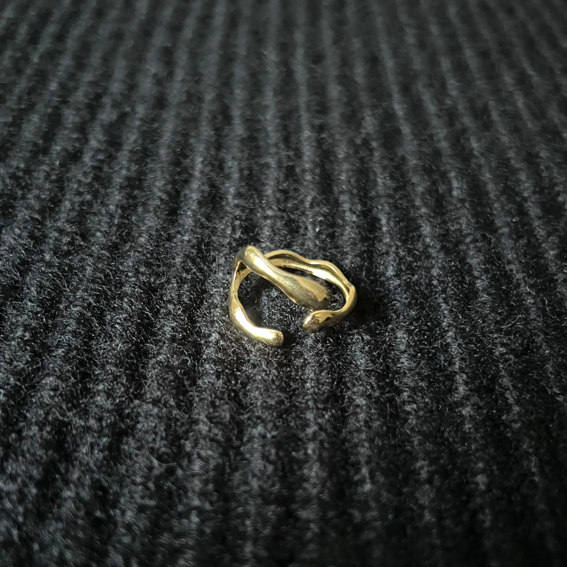 Justerbar ring i rostfritt stål med guldplätering, rost- och nickelfri. Den asymmetriska designen ger en elegant och modern känsla