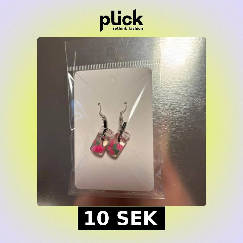 Unika örhängen formade som små burkar med en söt jordgubbsdesign. Perfekta för att ge en lekfull touch till din outfit. De hänger fint och är lätta att bära. (Billigt material)