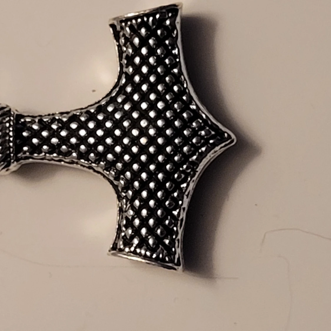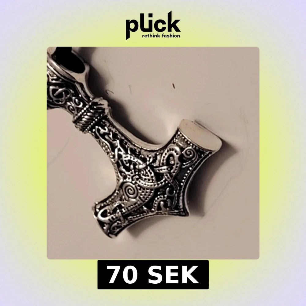 Helt ny Unikt halsband med svart flätad snodd och en detaljerad Torshammare i silverfärg. Hängsmycket har snygga vikingainspirerade mönster på ena sidan och rutigt mönster på andra. Perfekt för dig som gillar nordisk mytologi och vill sticka ut.