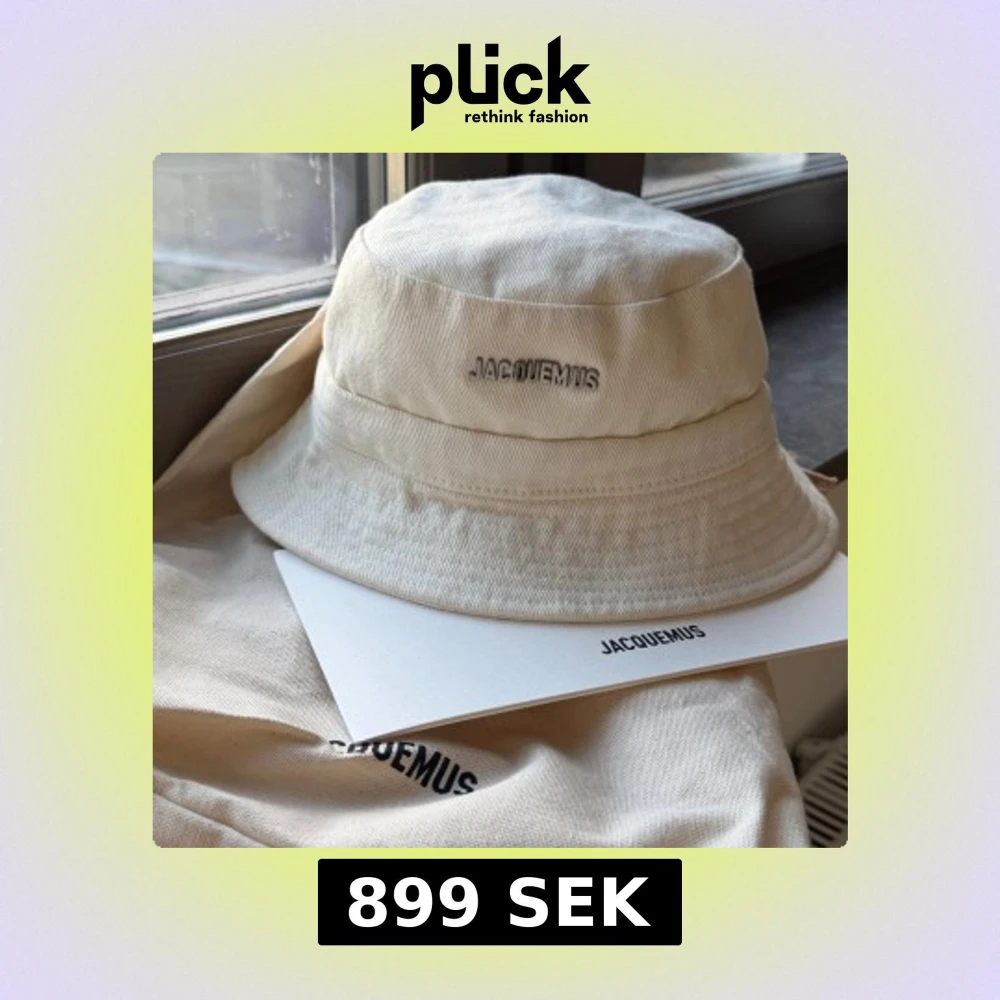 Snygg beige bucket hat från Jacquemus, lite smutsig på baksidan men de täcker ändå snöret när man knyter där bak. Annars fint skick