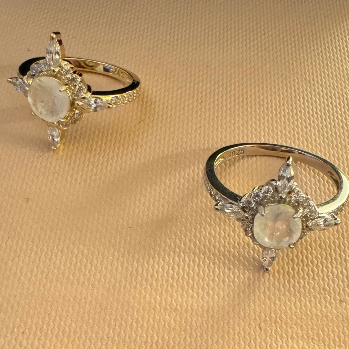 Magiskt vackra månstens ringar i 925 sterling silver och 18K guldpläterad ringar , finns i strlk 4,5,6,7,8,9