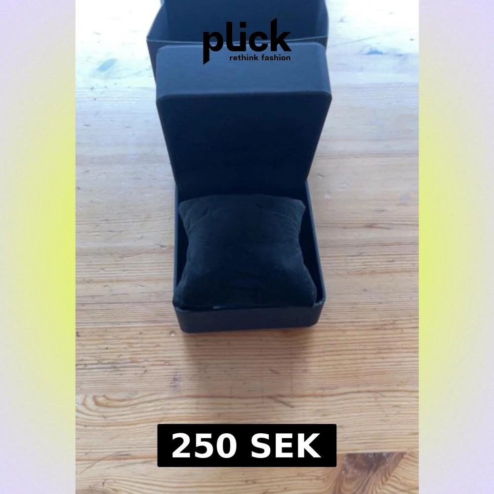 Säljer en stilren svart klockask med matchande kudde inuti. Asken har en enkel och modern design med mjuka linjer och är perfekt för att förvara din klocka. Kudden är klädd i svart tyg och ger extra skydd. Perfekt för dig som vill ge bort en klocka eller förvara din egen.