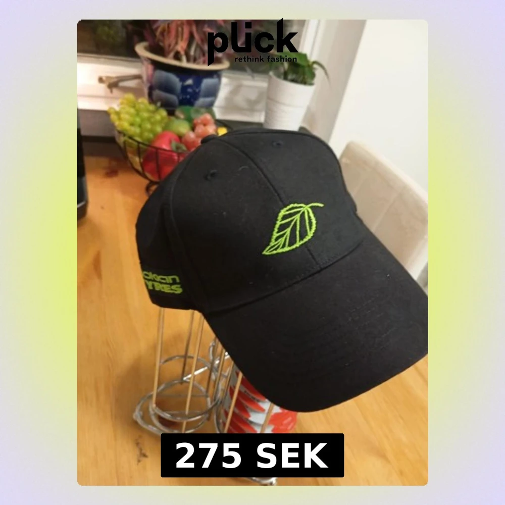 Svart keps med böjd skärm och broderad grön bladlogga framtill. På sidan finns ett grönt Nokian Tyres-tryck. Kepsen är i en klassisk form med ventilationshål upptill. Perfekt för dig som gillar streetwear och snygga detaljer.