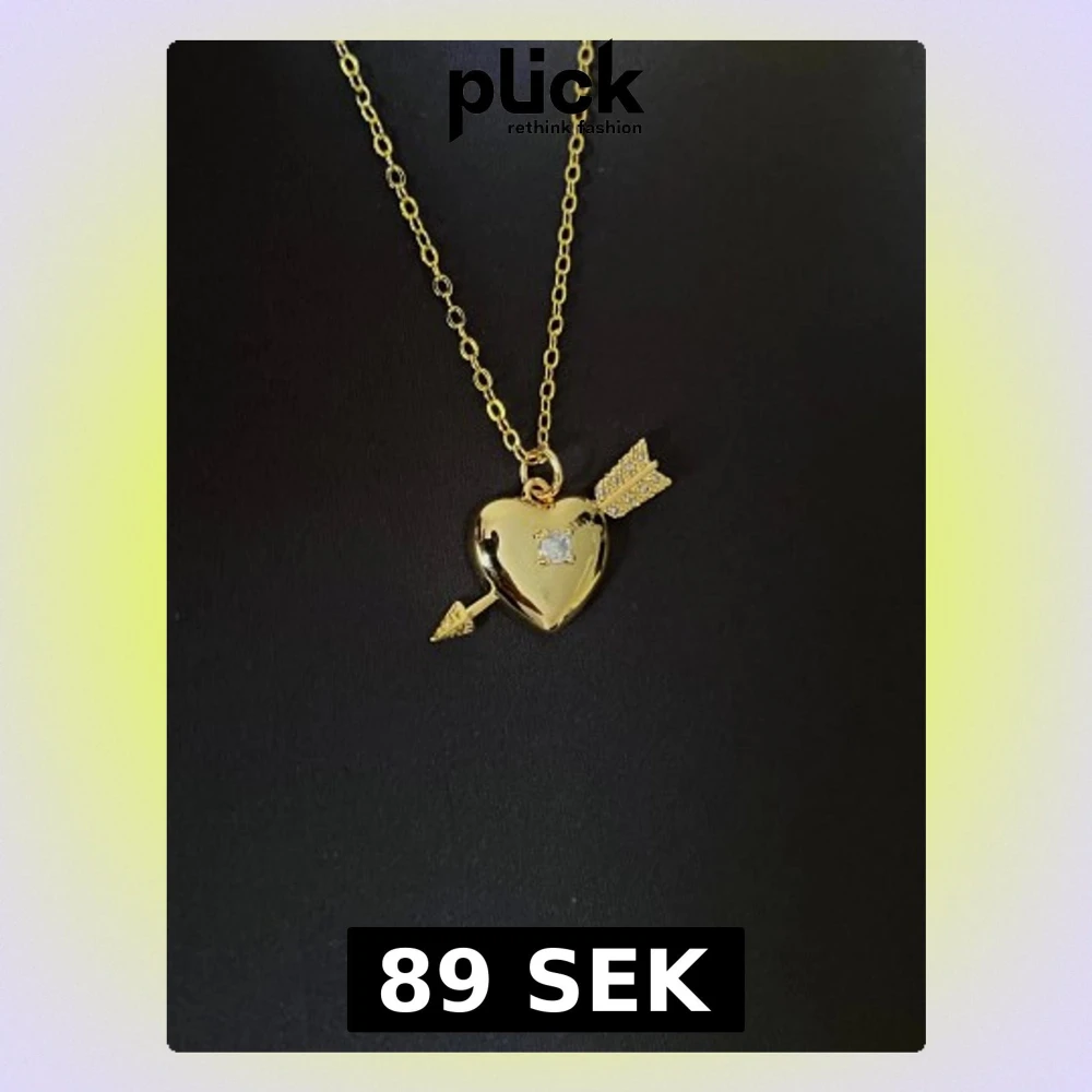 Guldpläterat pil-hjärta med glittrande detaljer. Rostfri, justerbar kedja 44+4 cm.