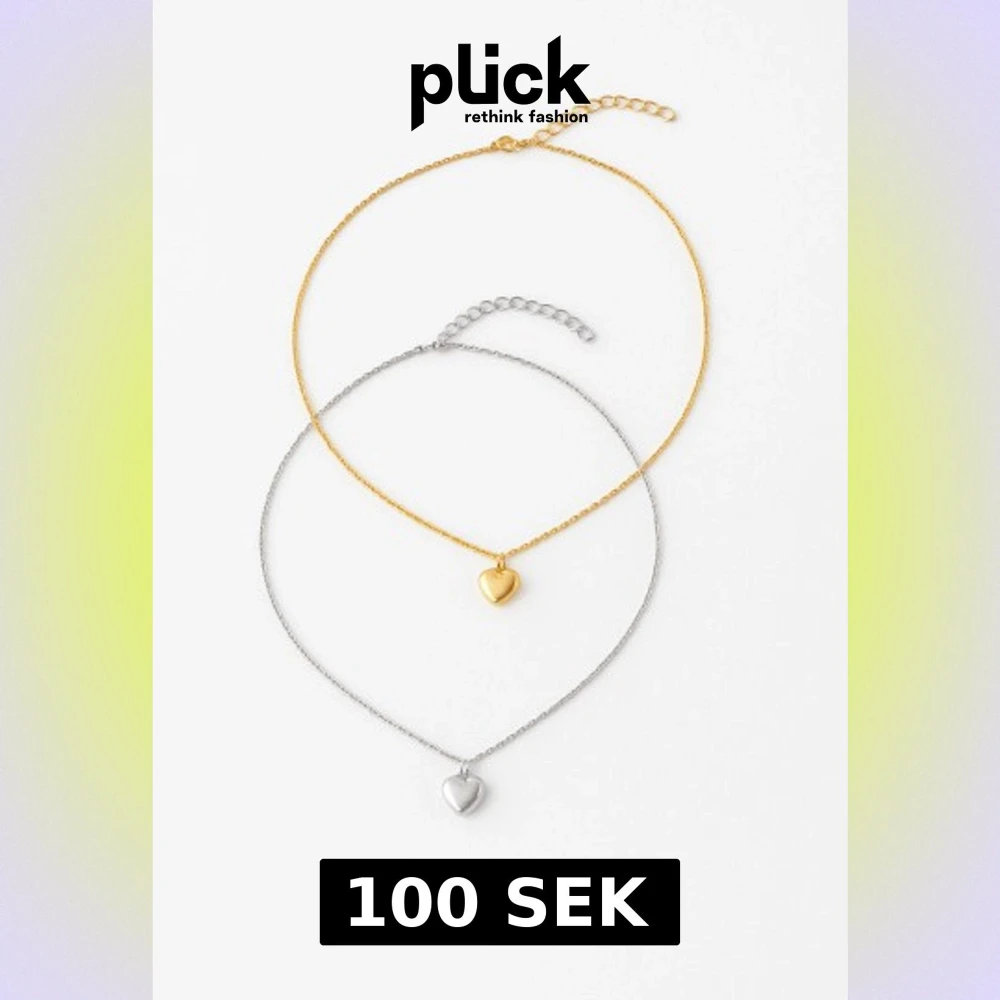 Säljer två tunna halsband, ett i silverfärg och ett i guldfärg, båda med ett stilrent hjärthänge. Kedjorna är smala och minimalistiska, perfekta för lager-på-lager-look. Materialet ser ut att vara metall. Passar dig som gillar enkla men söta smycken.